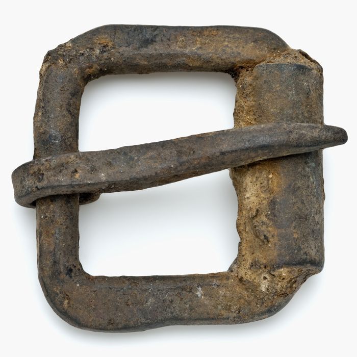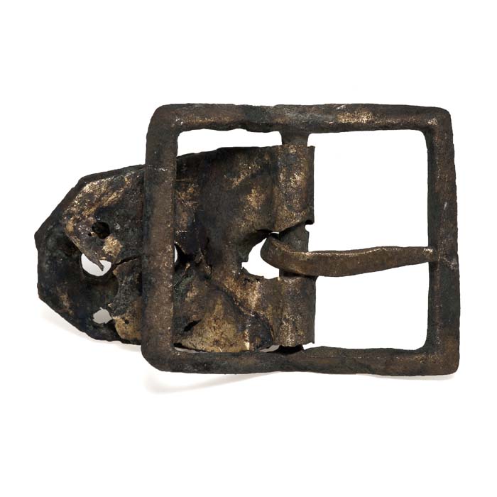 Kleine metalen gesp, rechthoekig en aan één zijde ve...