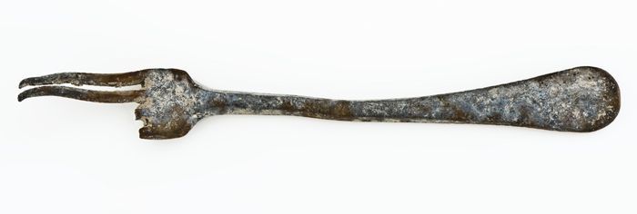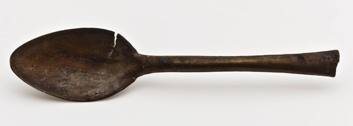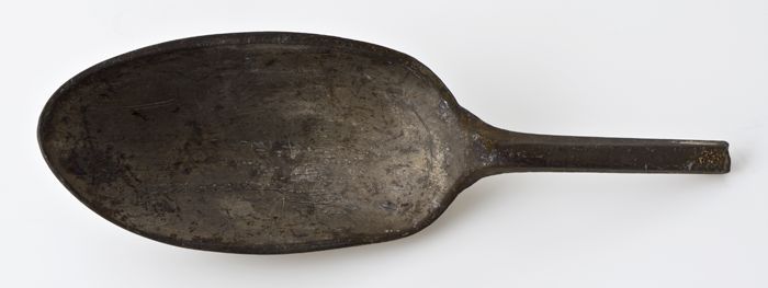 Lepel met spits toelopende, ovale bak en vierkantige...