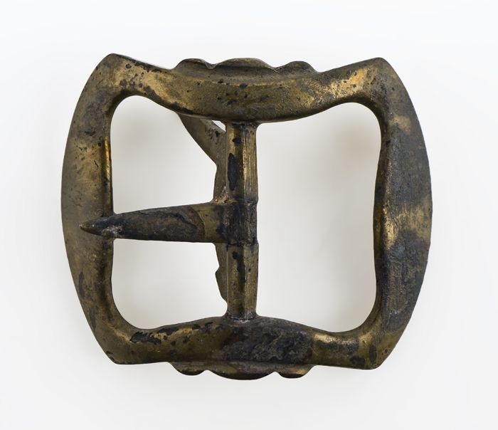 Geelkoperen schoengesp, in het midden ingesnoerd met...