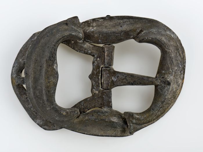 Tinnen schoengesp, ovaal met geprofileerde omtrek, g...
