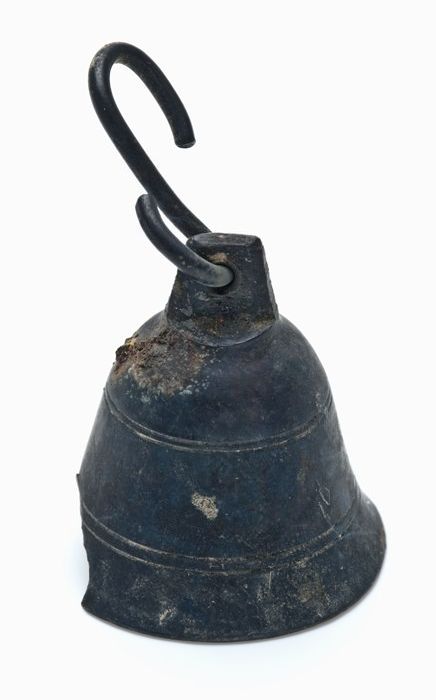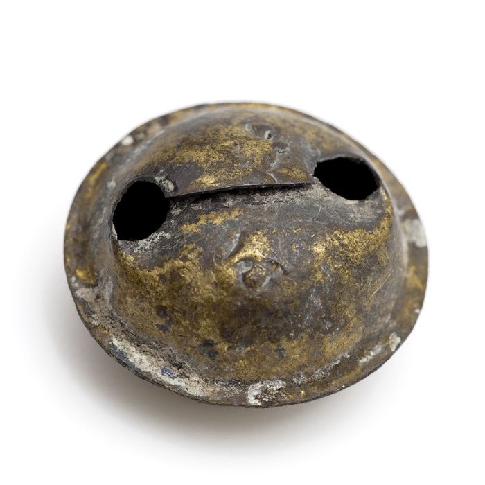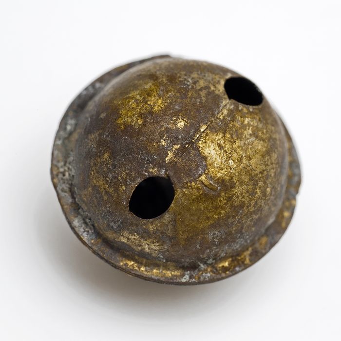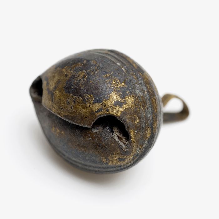 Koperen bel van muziekinstrument of paardentuig, gem...