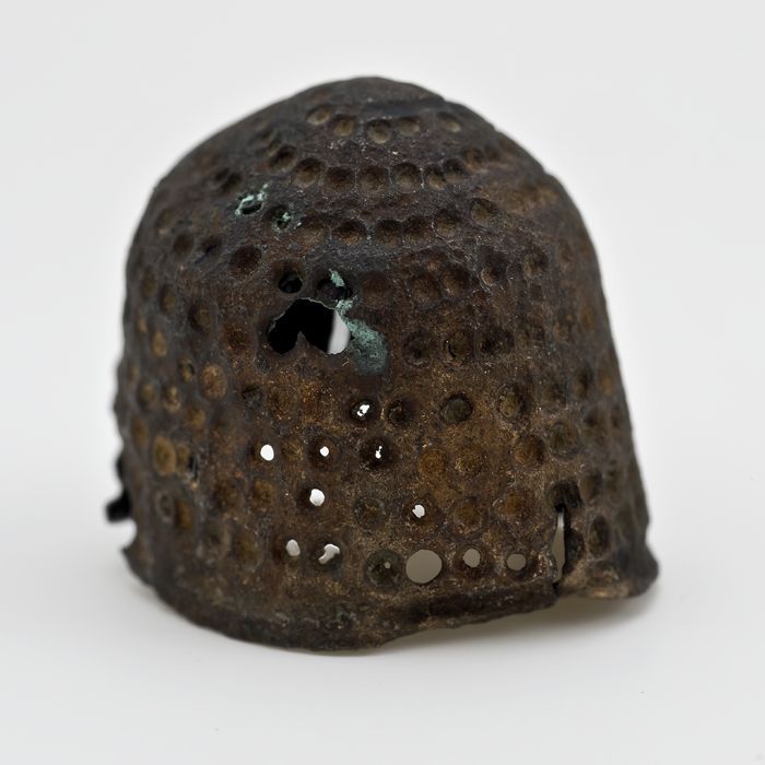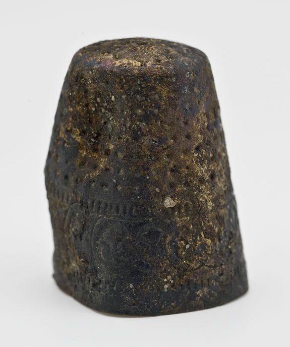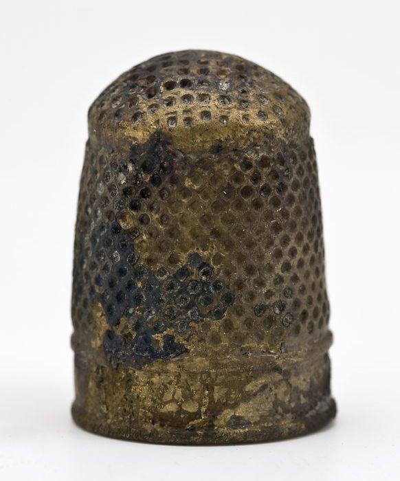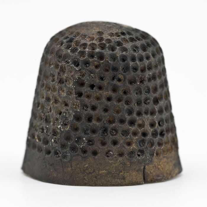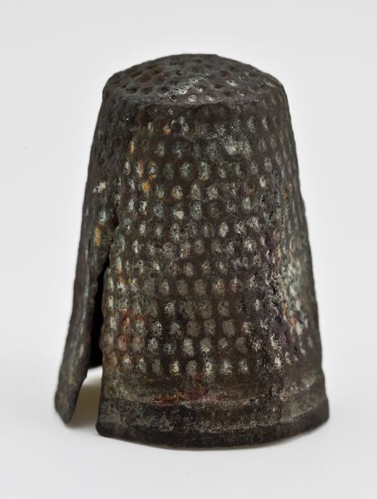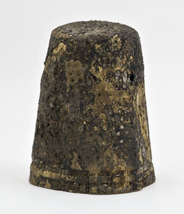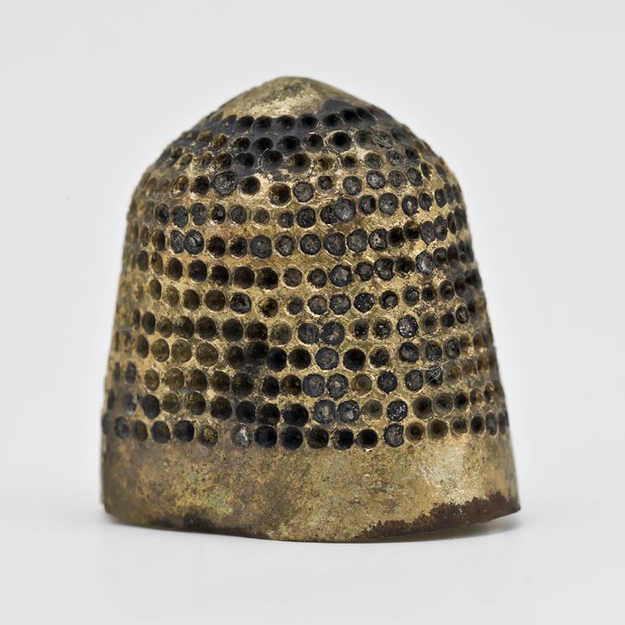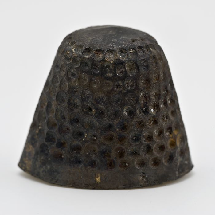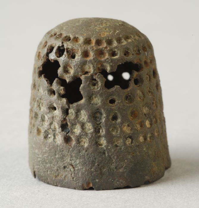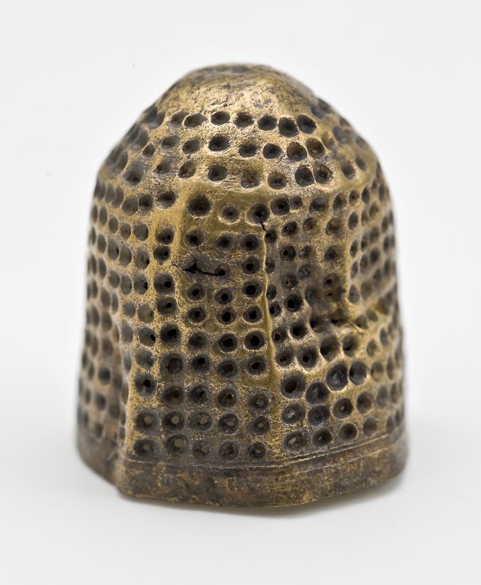 Koperen gegoten vingerhoed met linksdraaiende spiraal