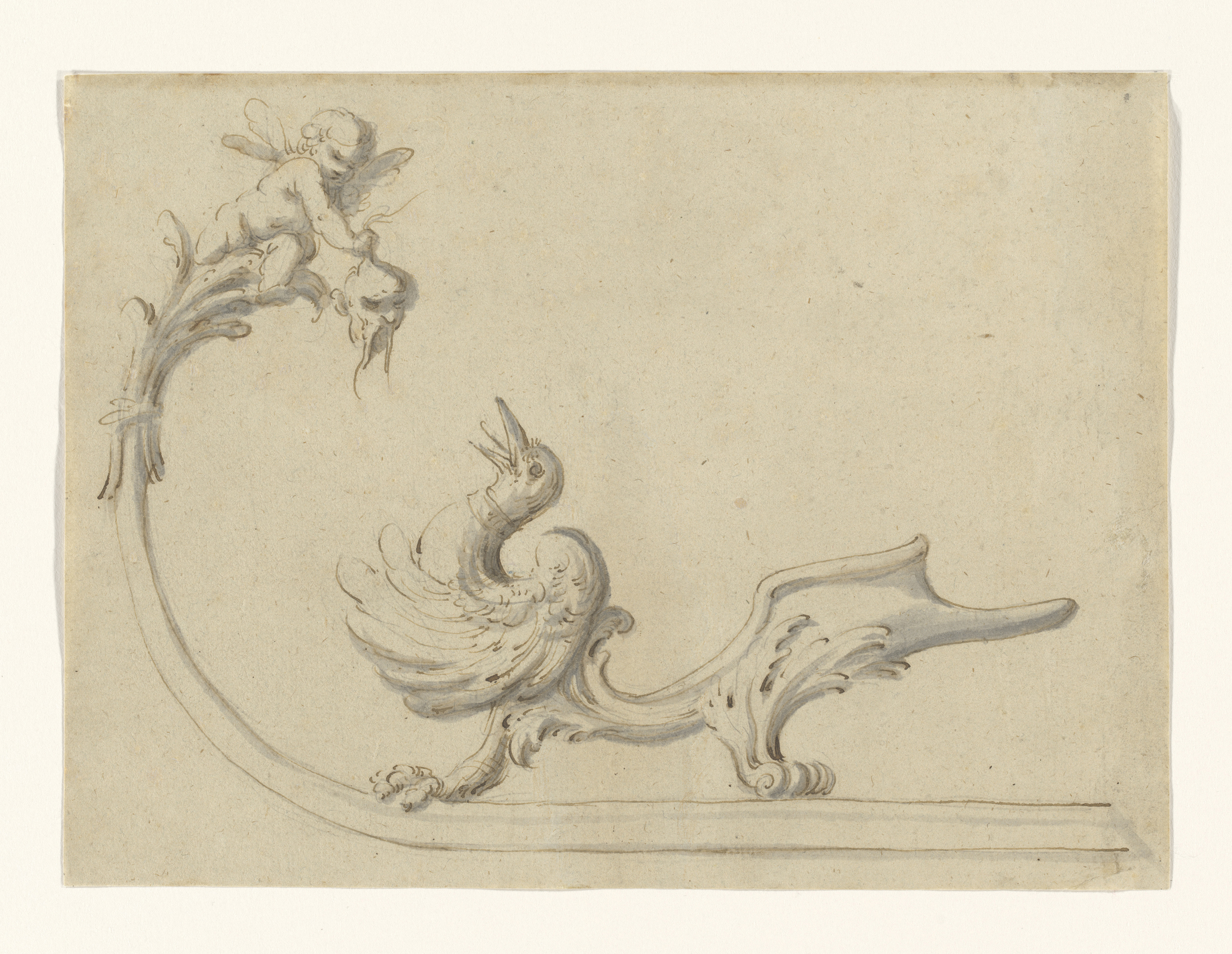 Ontwerp voor een over een vergulde roede gedrapeerd ...