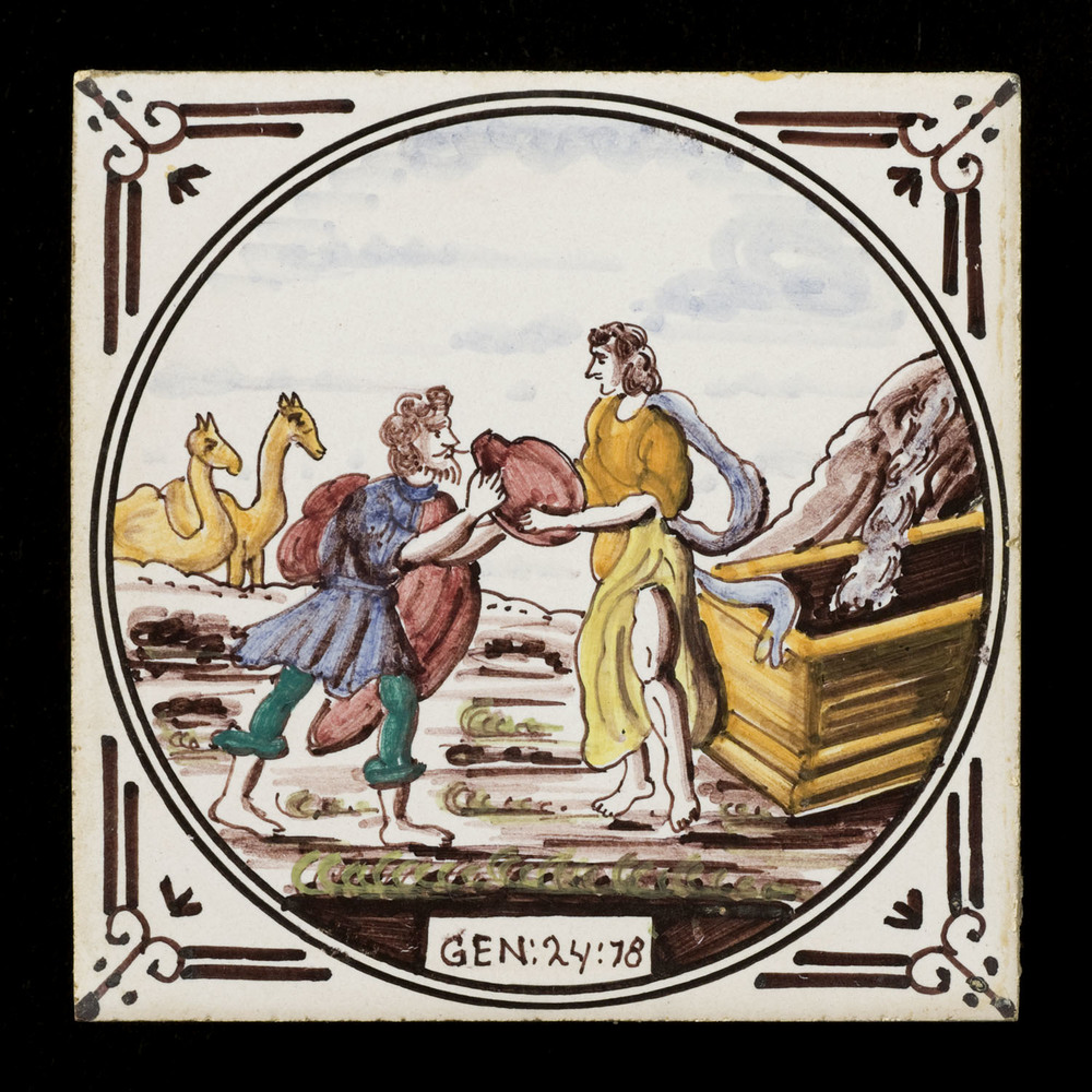 Tegelveld van keramiek, tinglazuur, voorstellende ee...