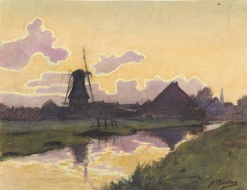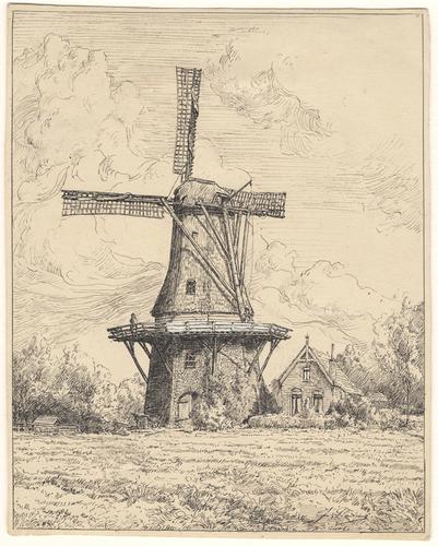 Tekening van de houtzaagmolen aan het Oosteinde te D...