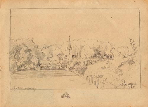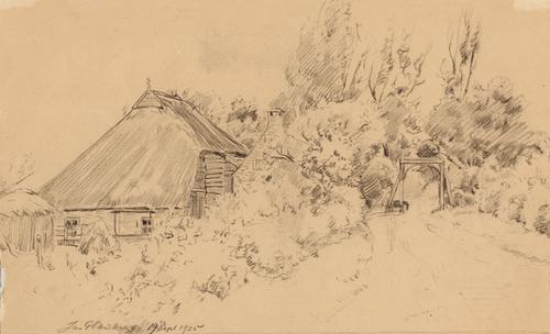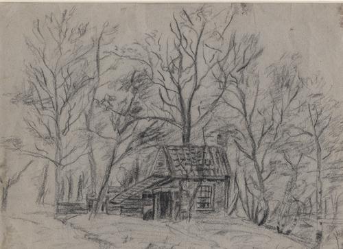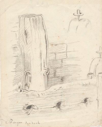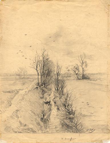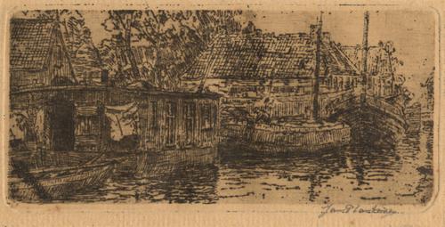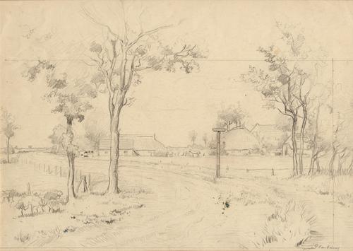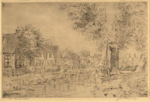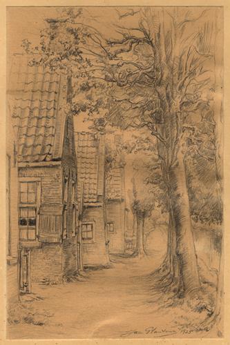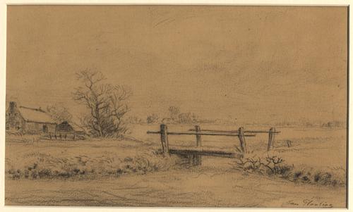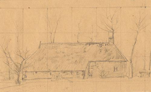 Tekening van een huis en bruggetje bij de Noorderdwa...