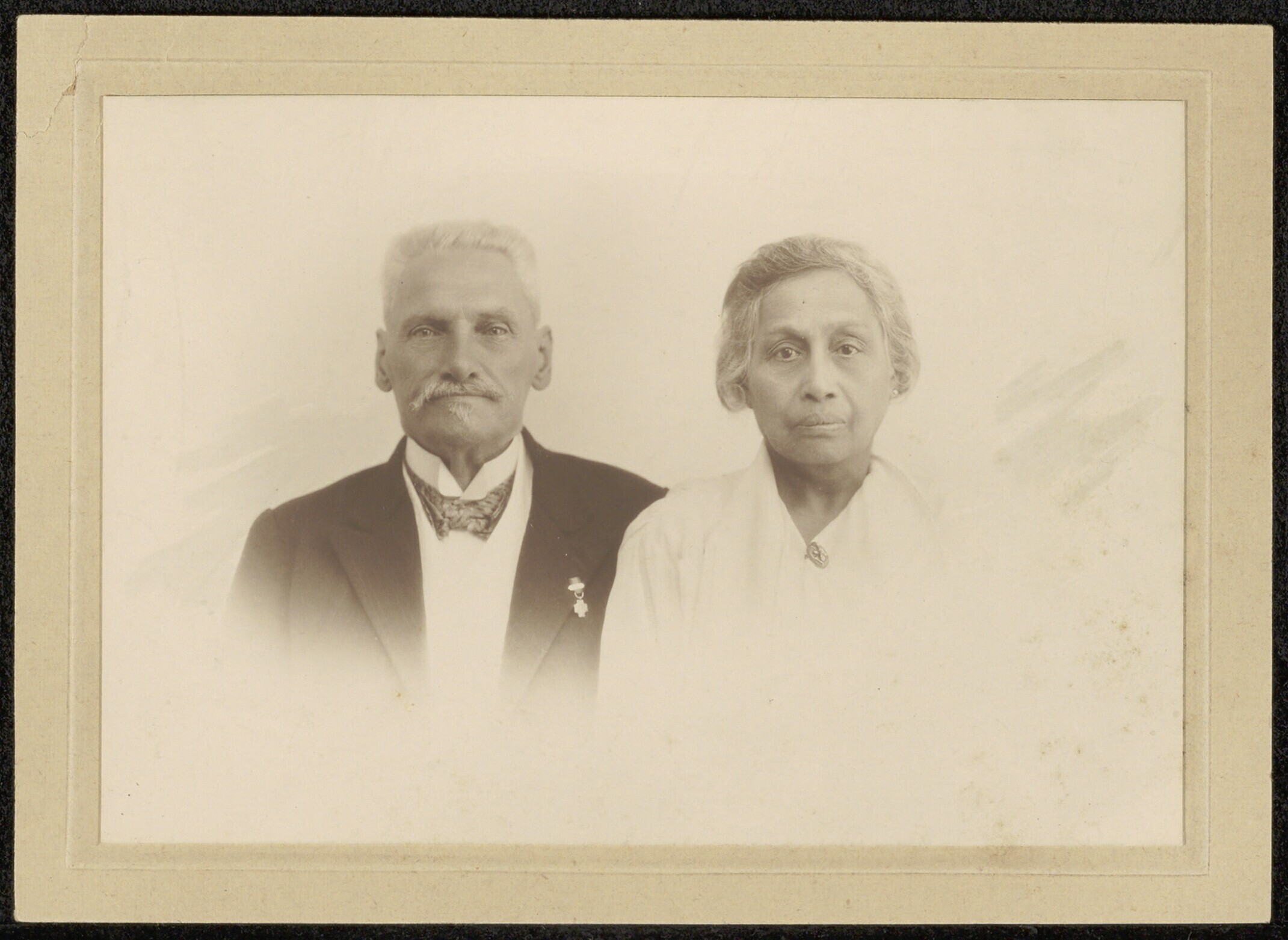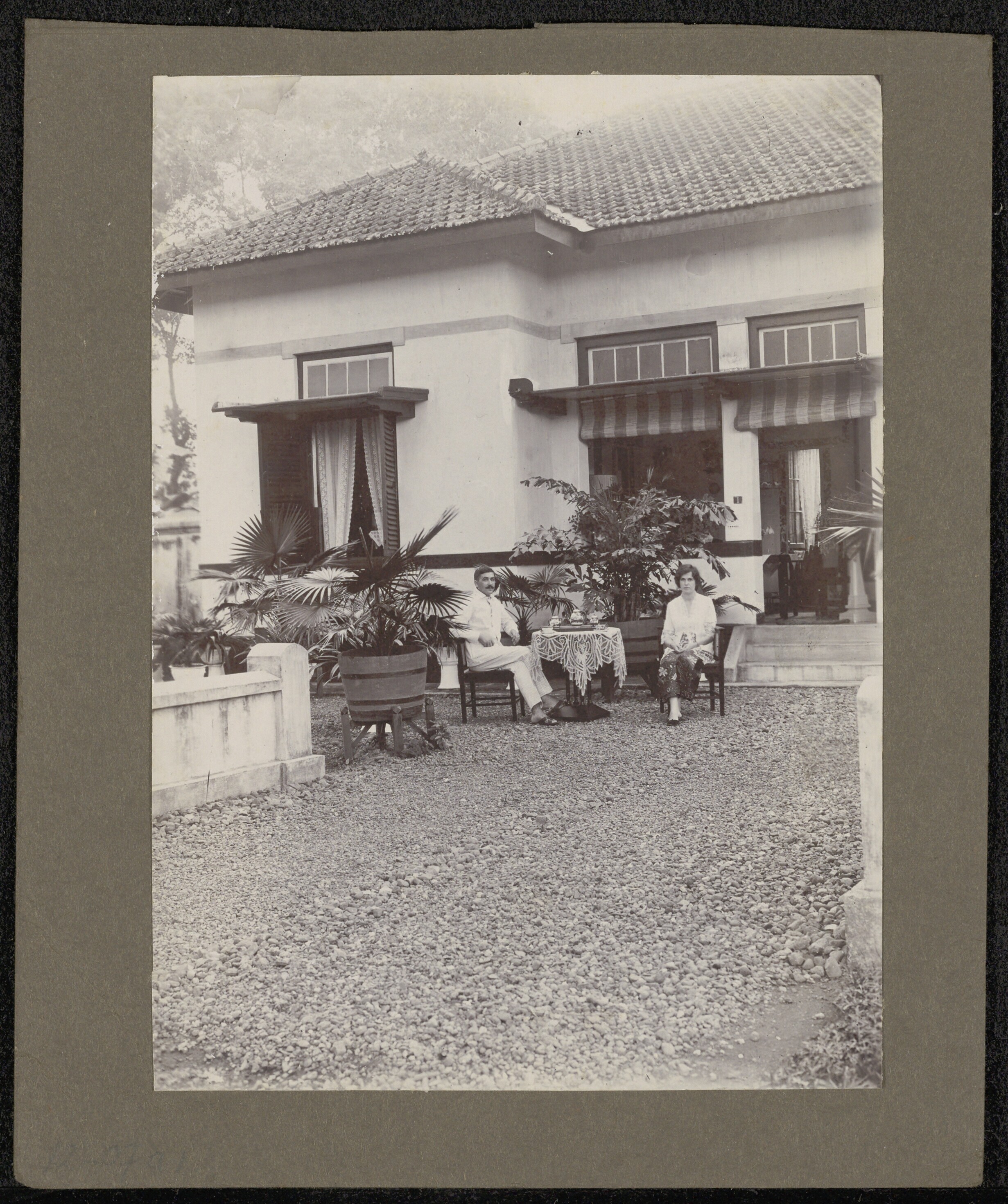 Portret van een man en vrouw in hun tuin te Pasanggr...