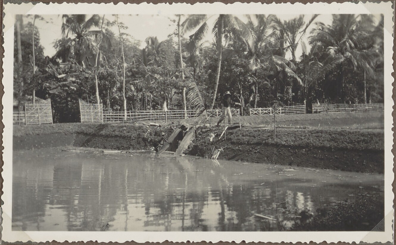 Gezicht op de zoetwatervisvijvers te Karanganjer