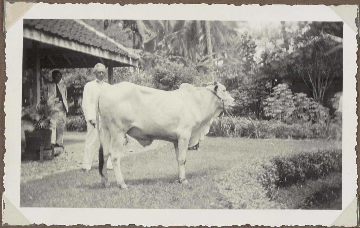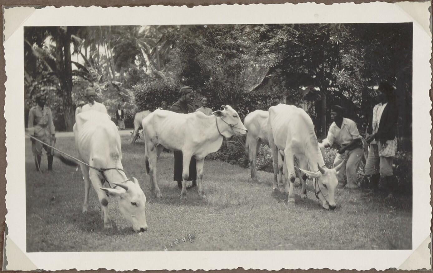 Enkele Javaanse mannen staan bij de fokrunderen in h...