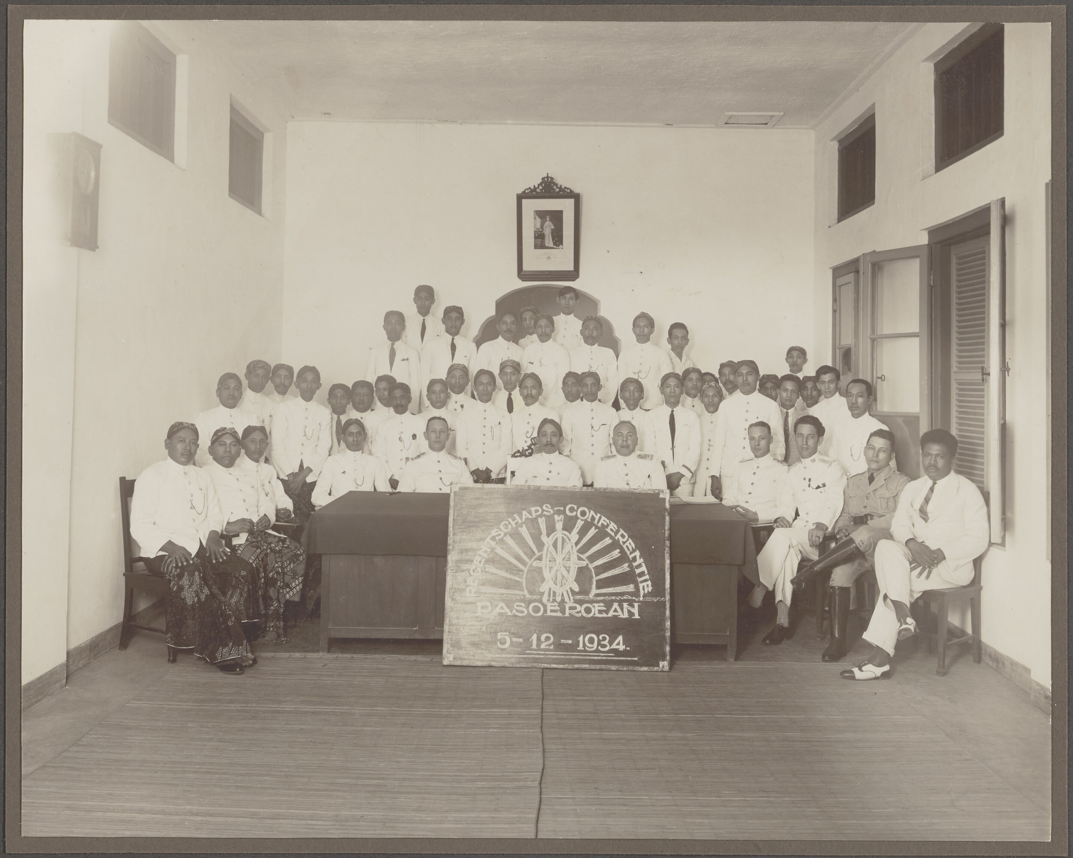 Groepsportret van Nederlandse en Javaanse politici e...