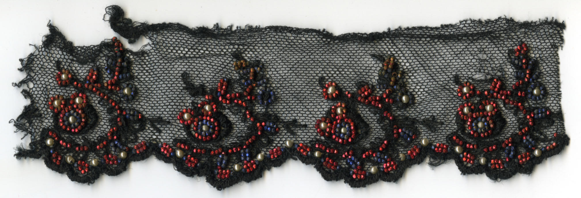 Strook geborduurde tule van een kornetmuts, Cadzand ...