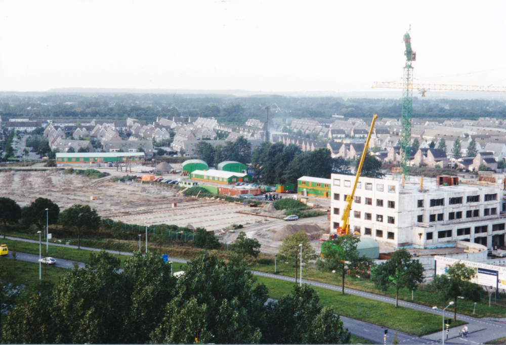 Luchtfoto van Ede, 1977 9 met o.a. nieuwe Raadhuis)