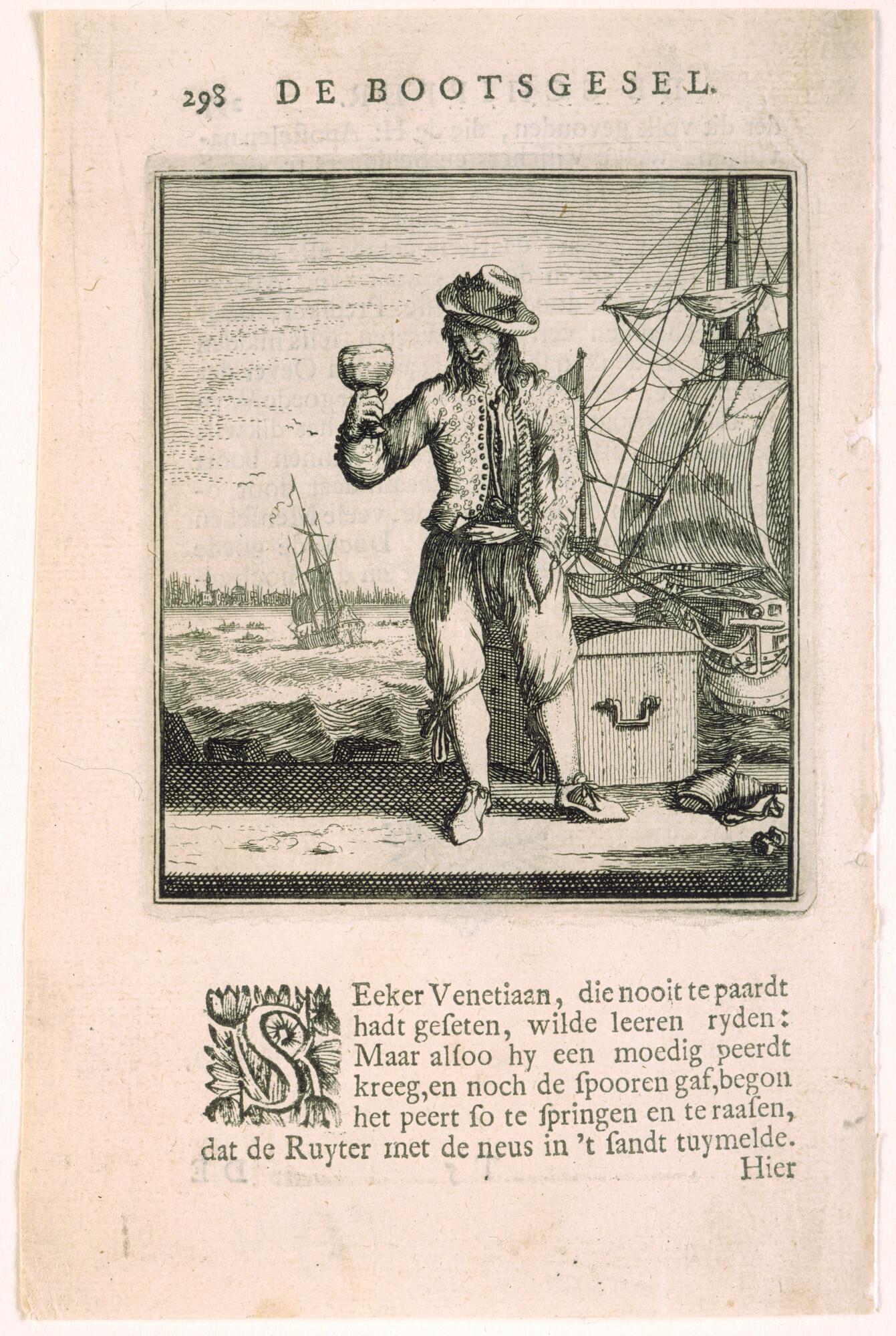 Een bootsknecht met een roemer in zijn hand