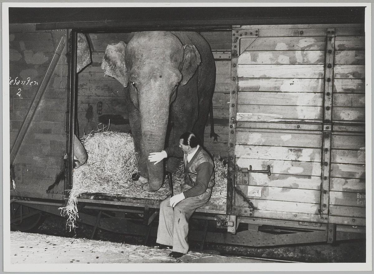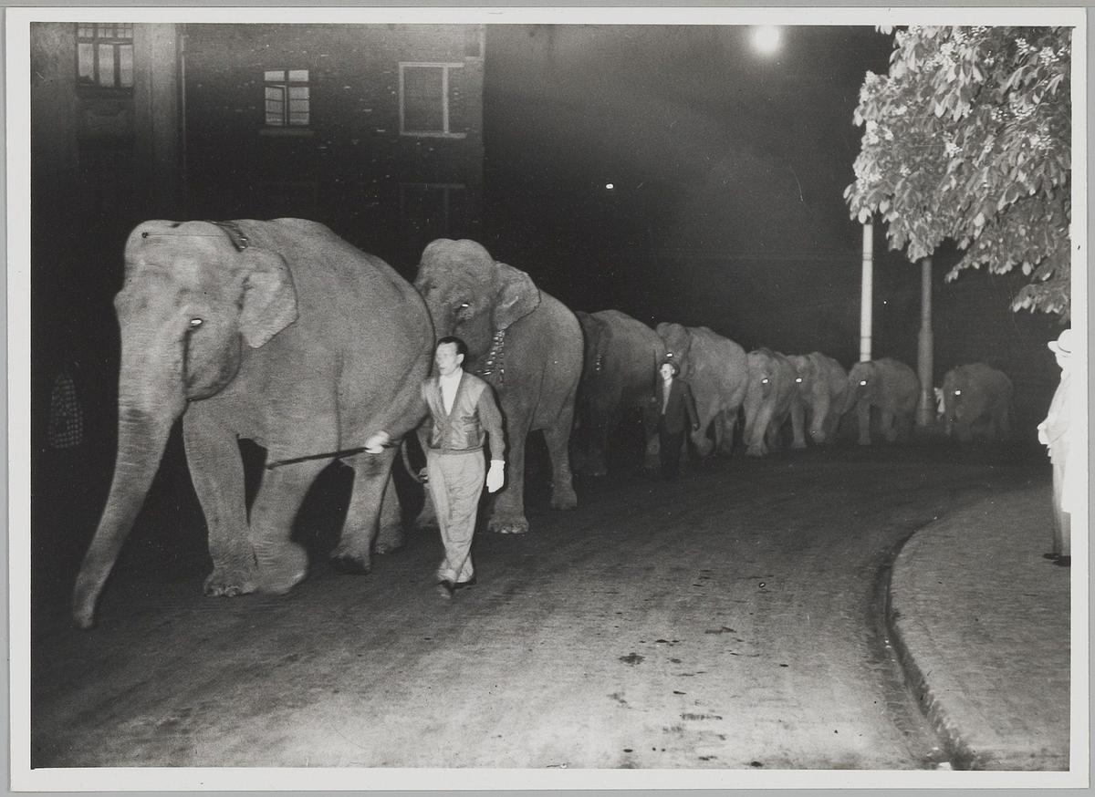 Circus Franz Althoff. Olifanten op weg naar station ...