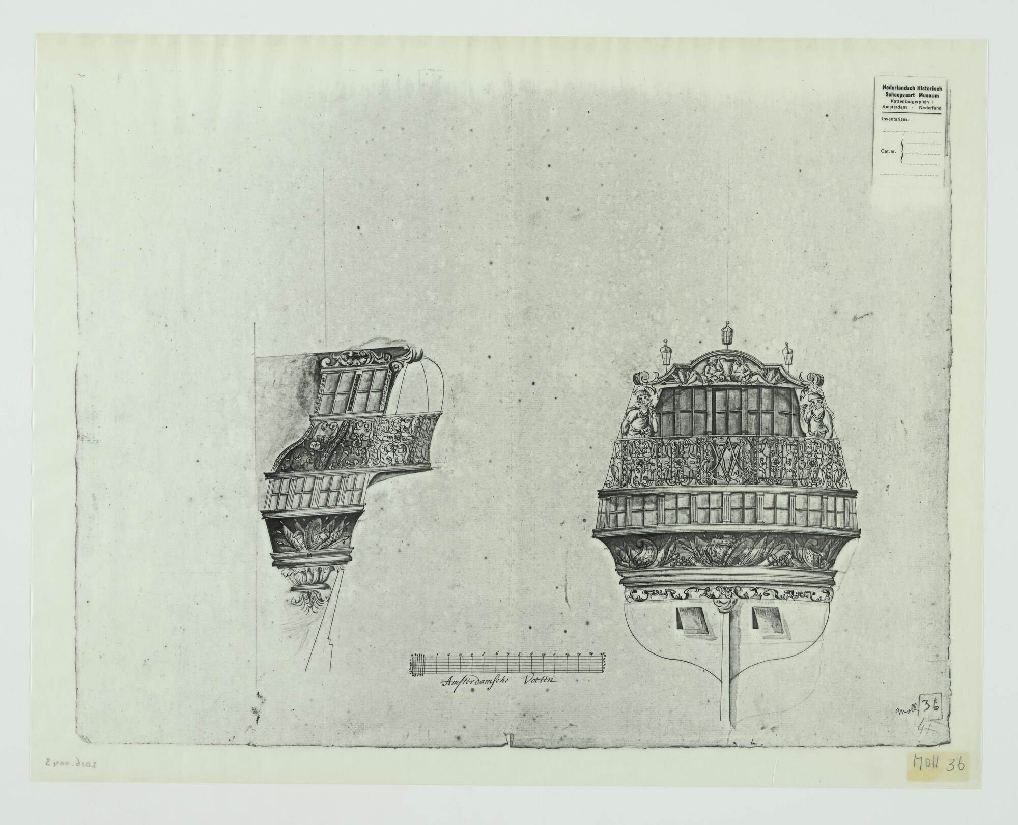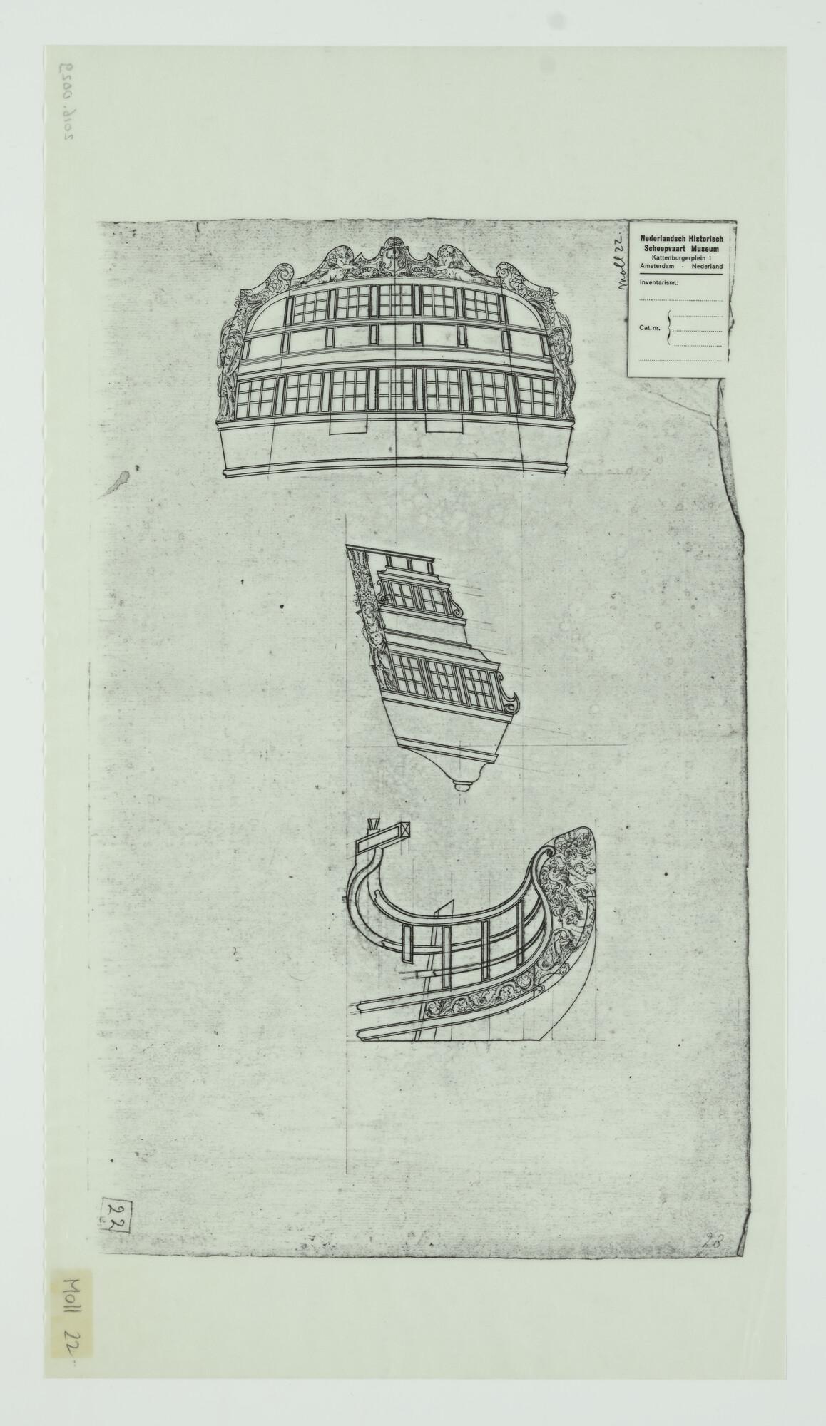 Spiegel, galerij en galjoen van een oorlogsschip uit...