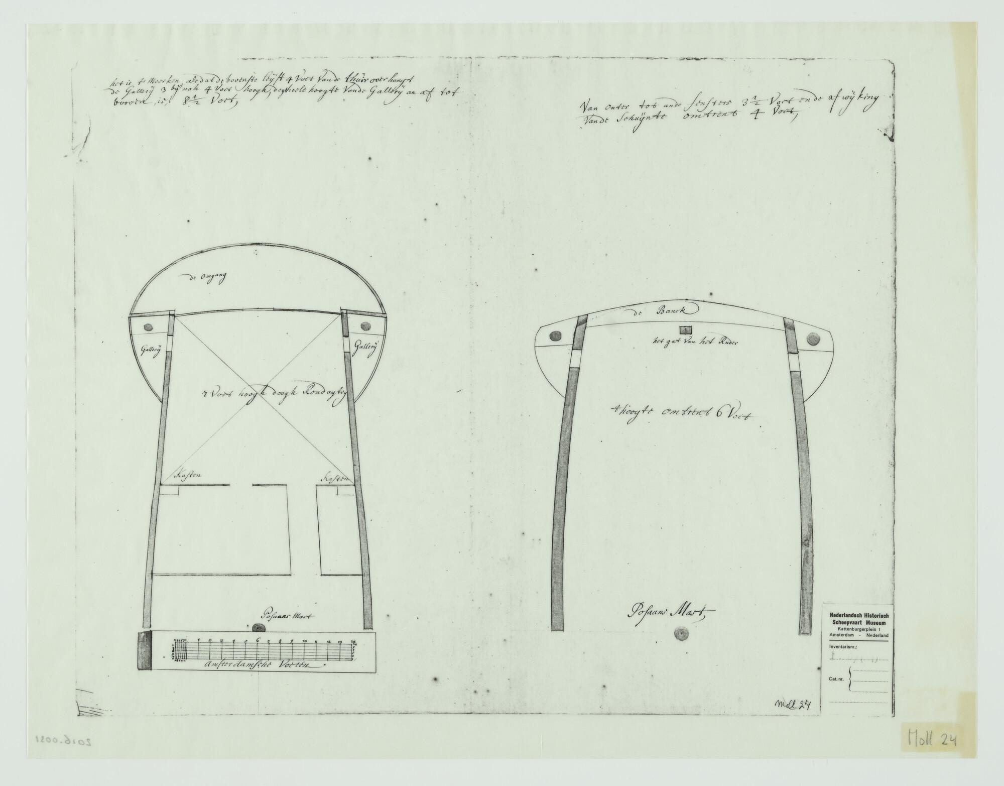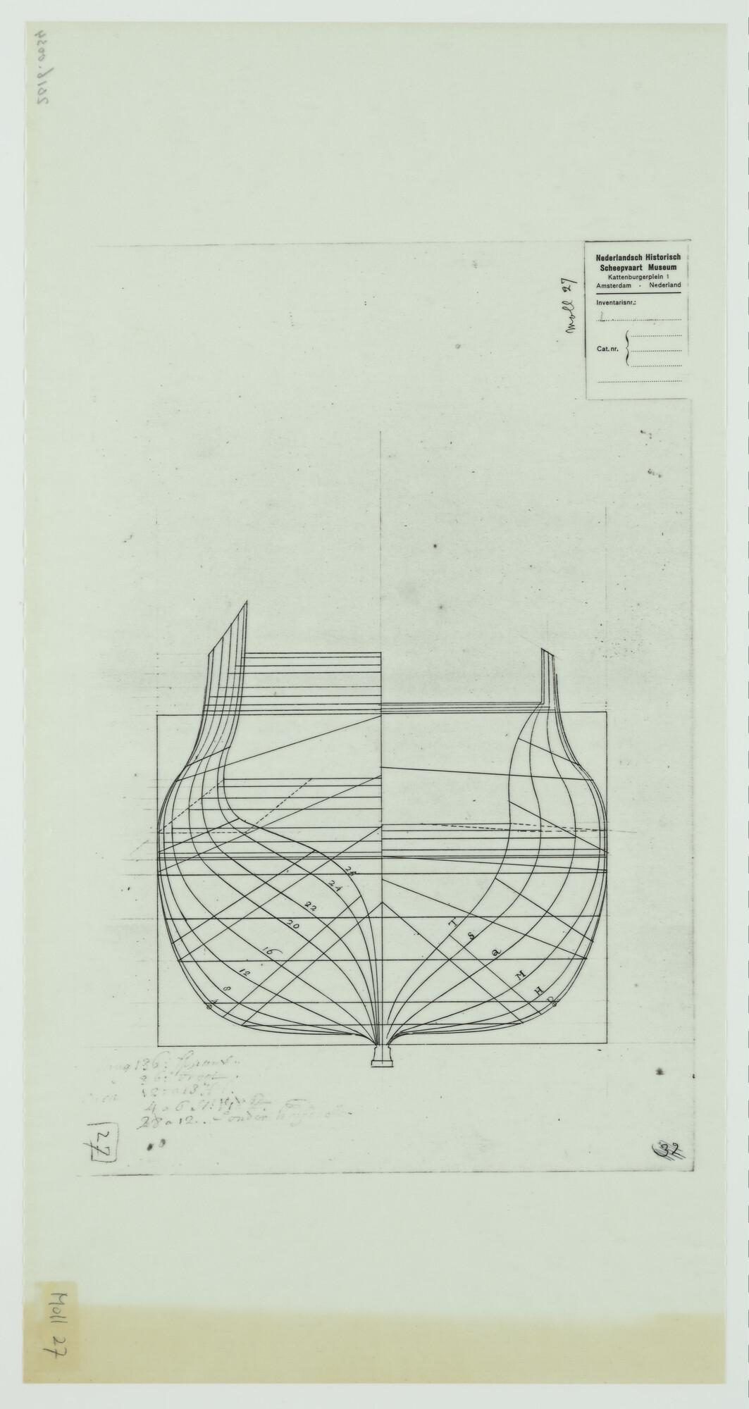 Lijnentekening en spantenraam van het achterschip va...