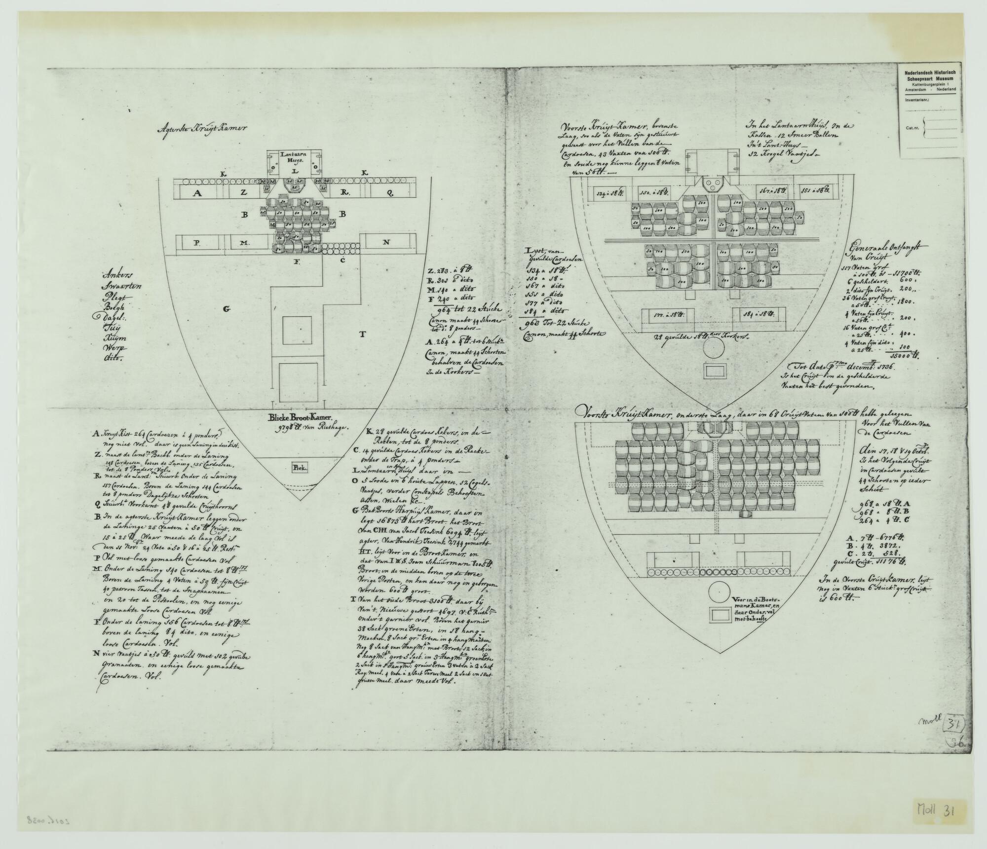 De stuwage in ruim en kruitkamers van 's Lands schip...