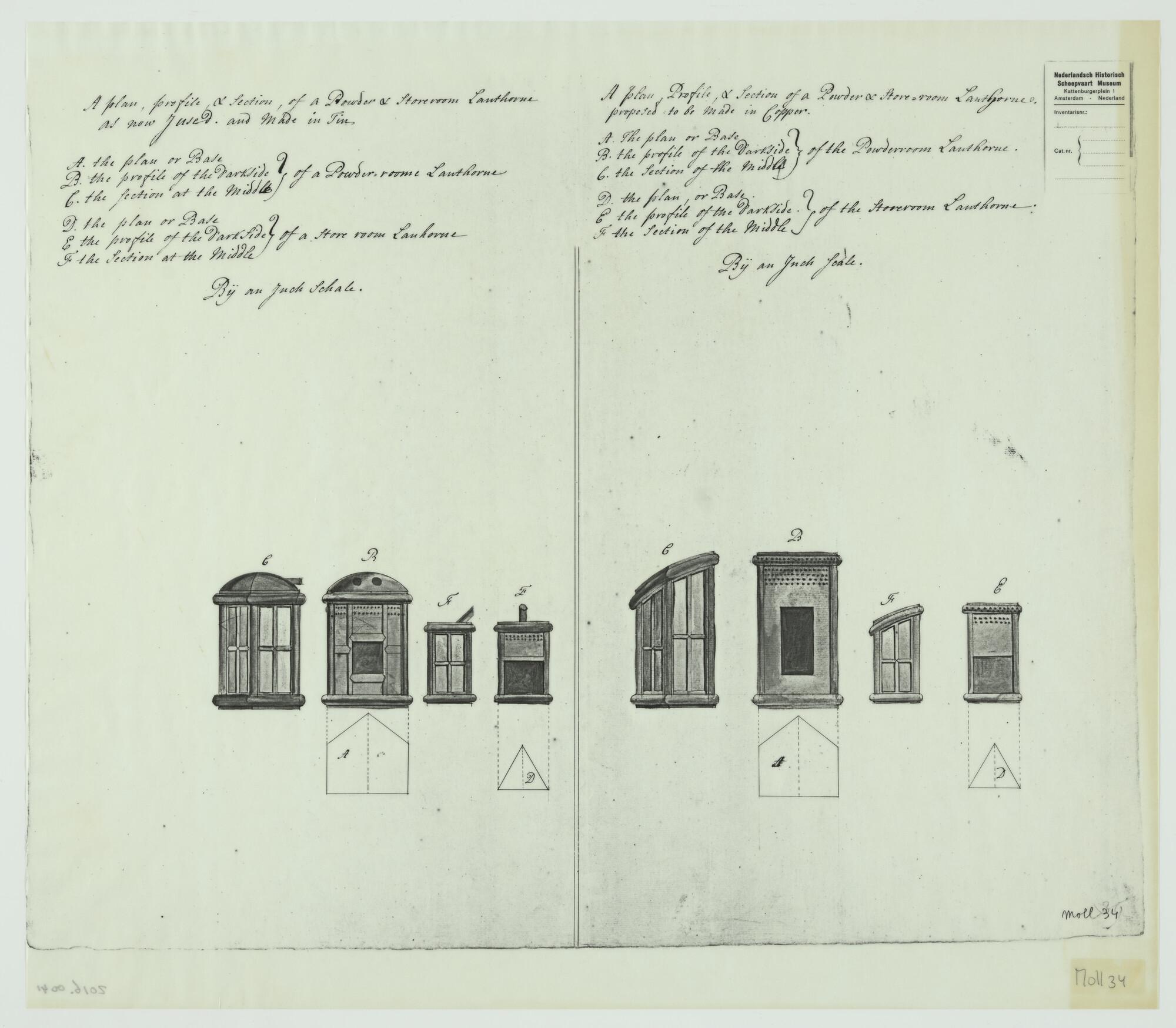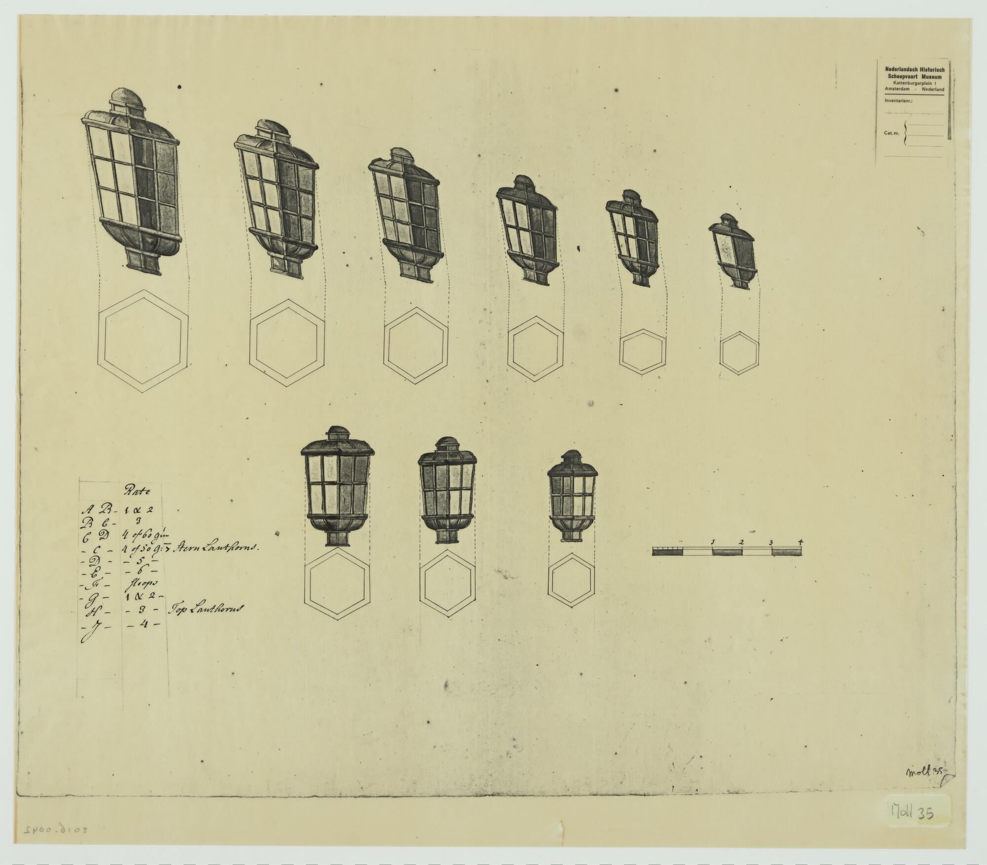 Kruitkamerlantaarns, bergplaatsenlantaarns in tin en...