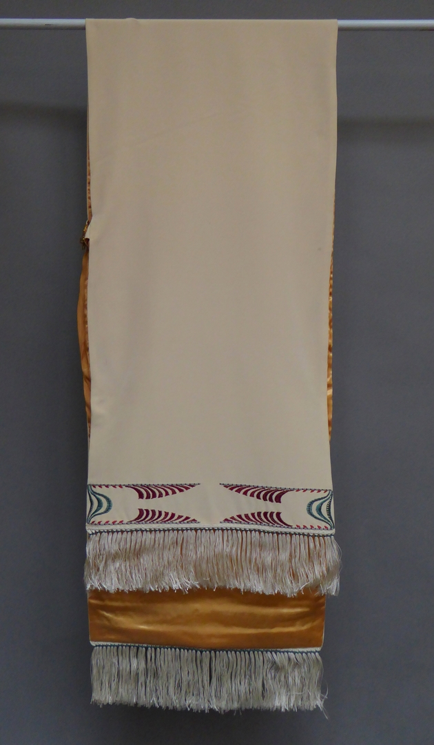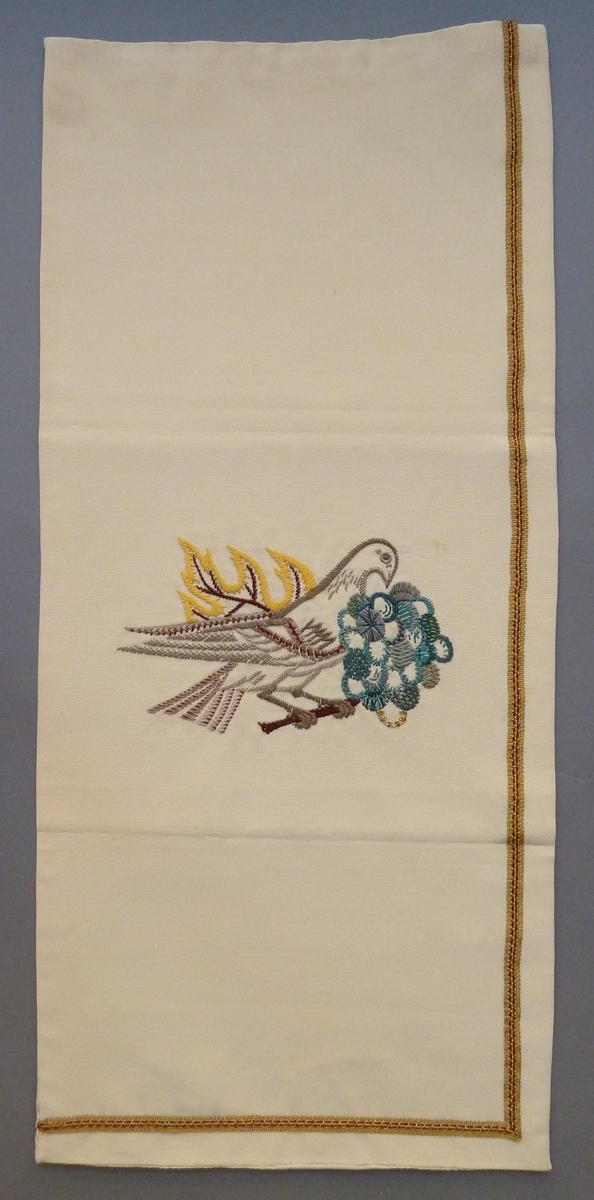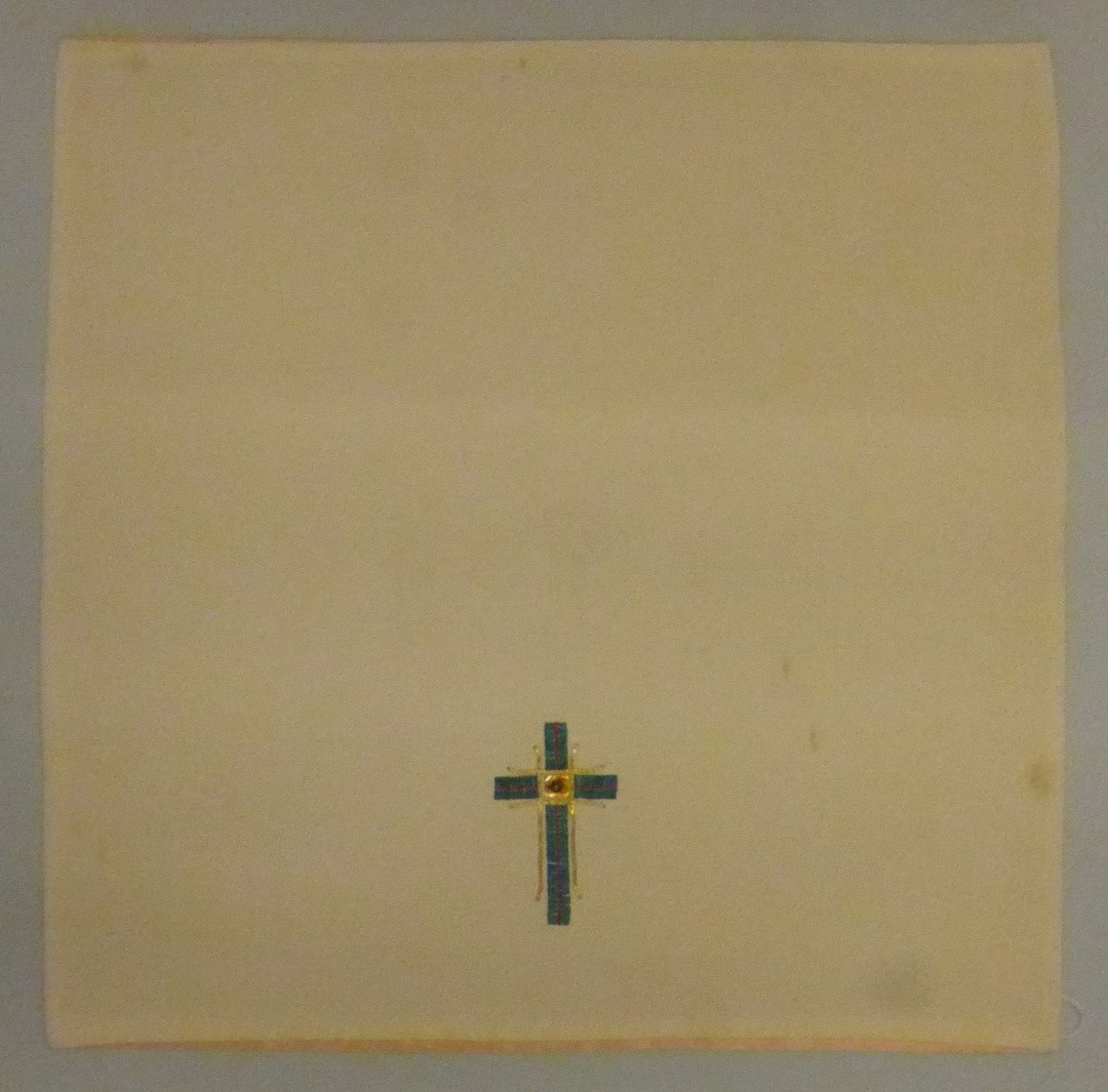 Witte koorkap met grof geborduurd Lam Gods met kruis...