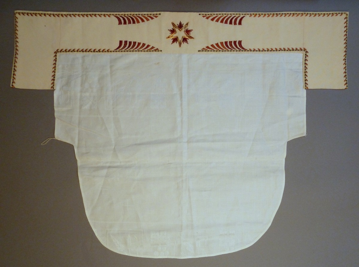 Witte dalmatiek met grof geborduurd Lam Gods met kru...