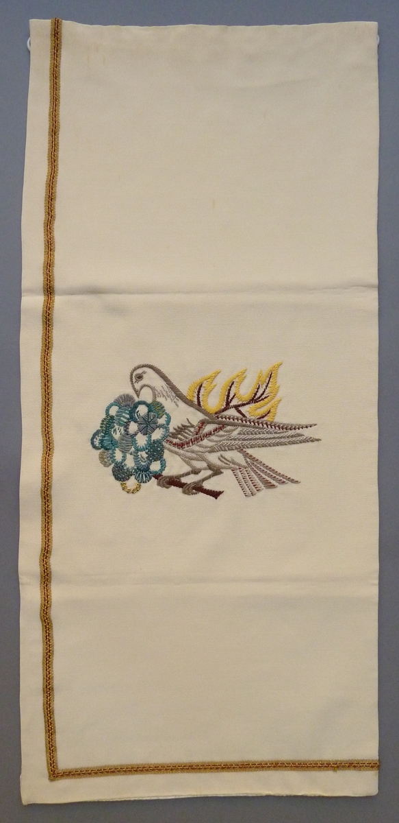 Borduurfragment van altaardwaal met stralend H. Hart...