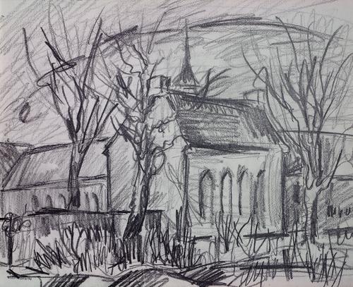 Tekening van het Carmelitessenklooster aan de Burgem...