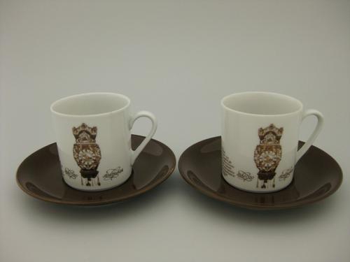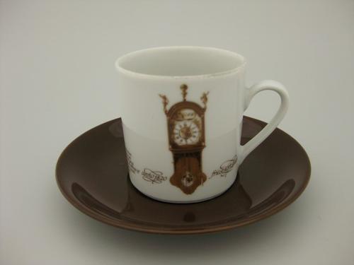 Kop en schotel met afbeelding stoeltjesklok anno 1750