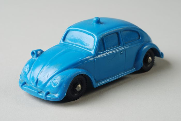Blauwe politieauto, Volkswagen 1200 Kever, onderop a...