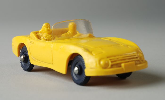 Gele cabriolet met venster, twee personen, Toyota 20...