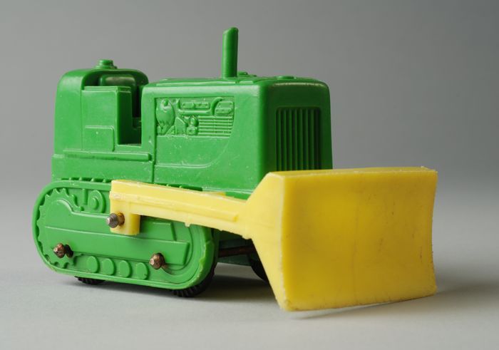 Groene bulldozer met gele schuif, Caterpillar (?), o...