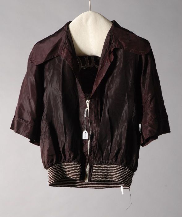 Donker kort jasje met op de achterkant "Club Chomas ...