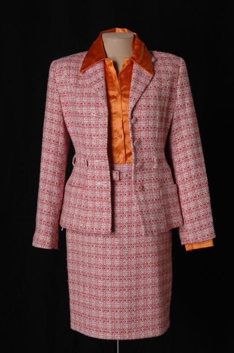 Roze jas en rok, met oranje blouse, "Mac & Maggie"