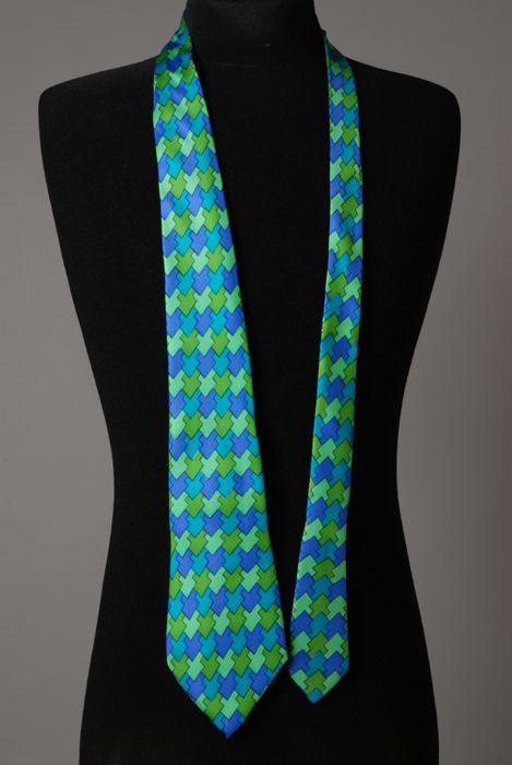 Stropdas, zelfbinder, van zijde, met blauw/groen dia...