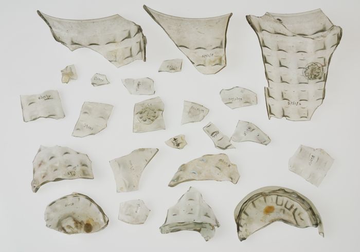 Fragmenten van bodem, standring, wand en braamnoppen...