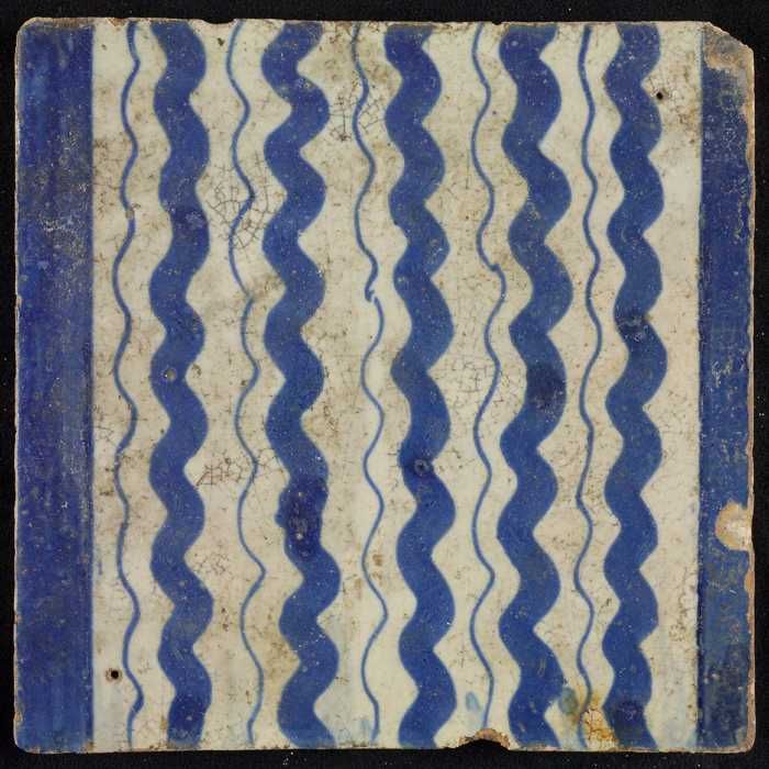 Tegel van schoorsteenpilaster, blauw op wit, deel va...