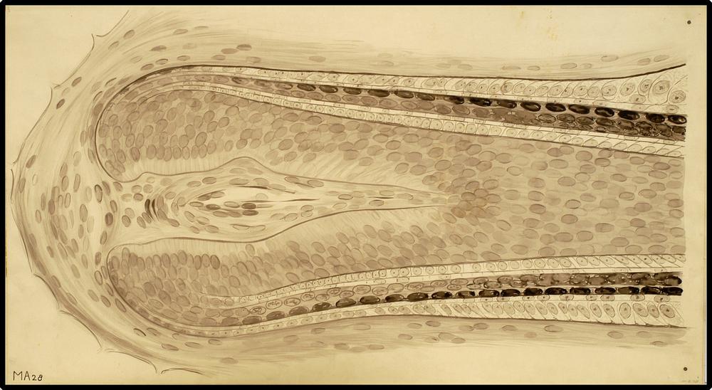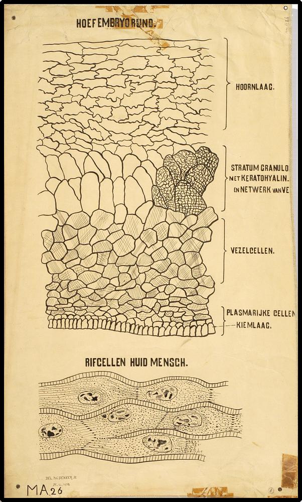 Onderwijsplaat microscopische anatomie (haarfollikel)