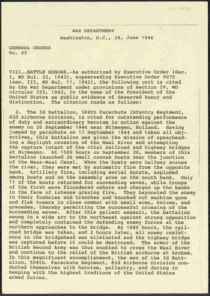 General Orders No. 65. VIII. Battle Honors 3rd Batta...