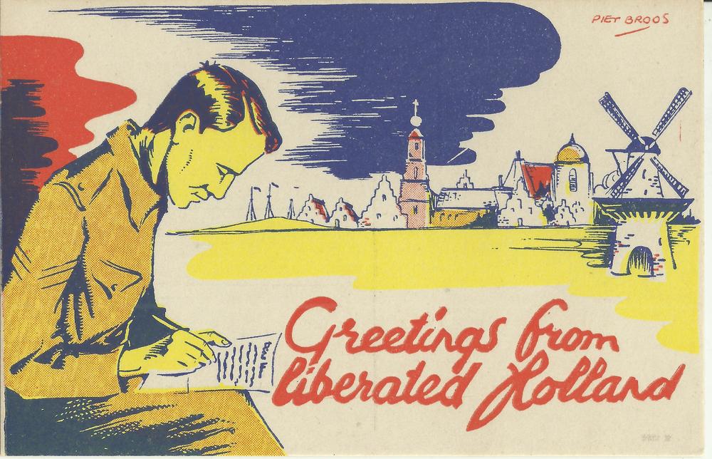 Greetings from liberated Holland man in militair uni...