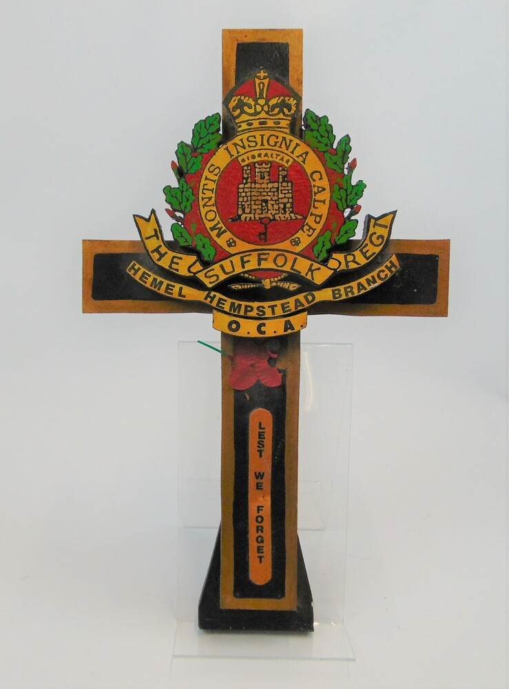 Houten kruis met daarop het embleem van The Suffolk ...