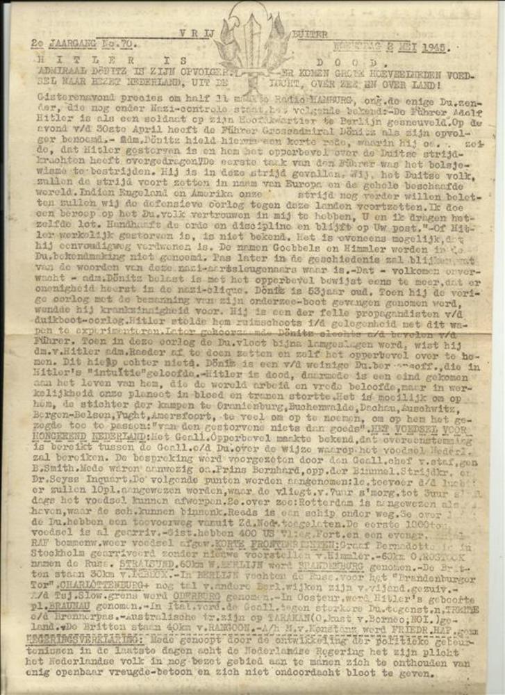 De Vrij Buiter, 2de jaargang, No 70, 2 mei 1945