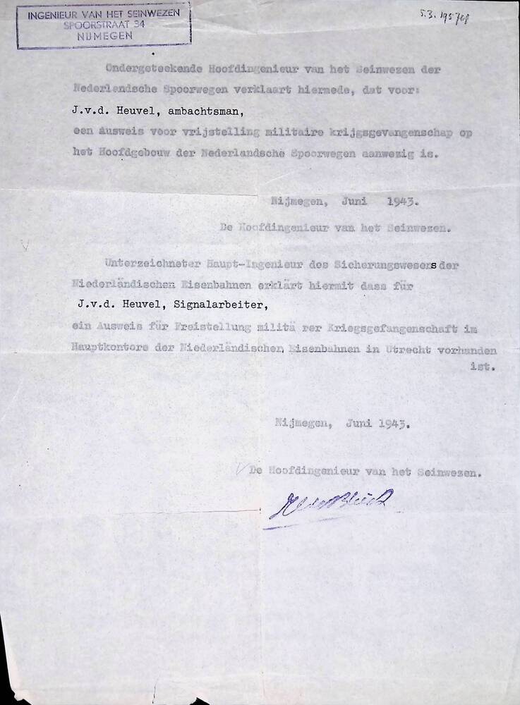 Verklaring van de hoofdingenieur van het Seinwezen b...