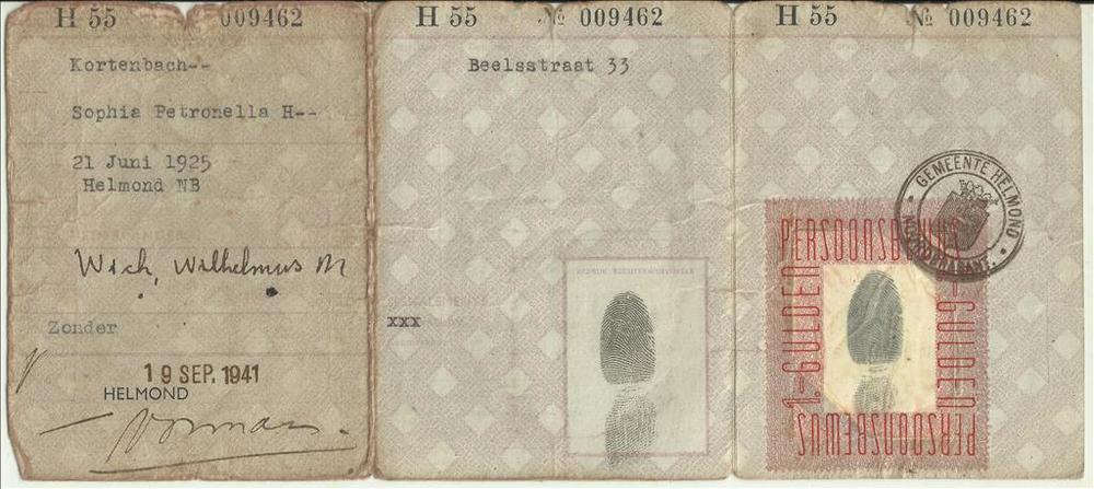 Persoonsbewijs op naam van Kortenbach, Sophia Petron...