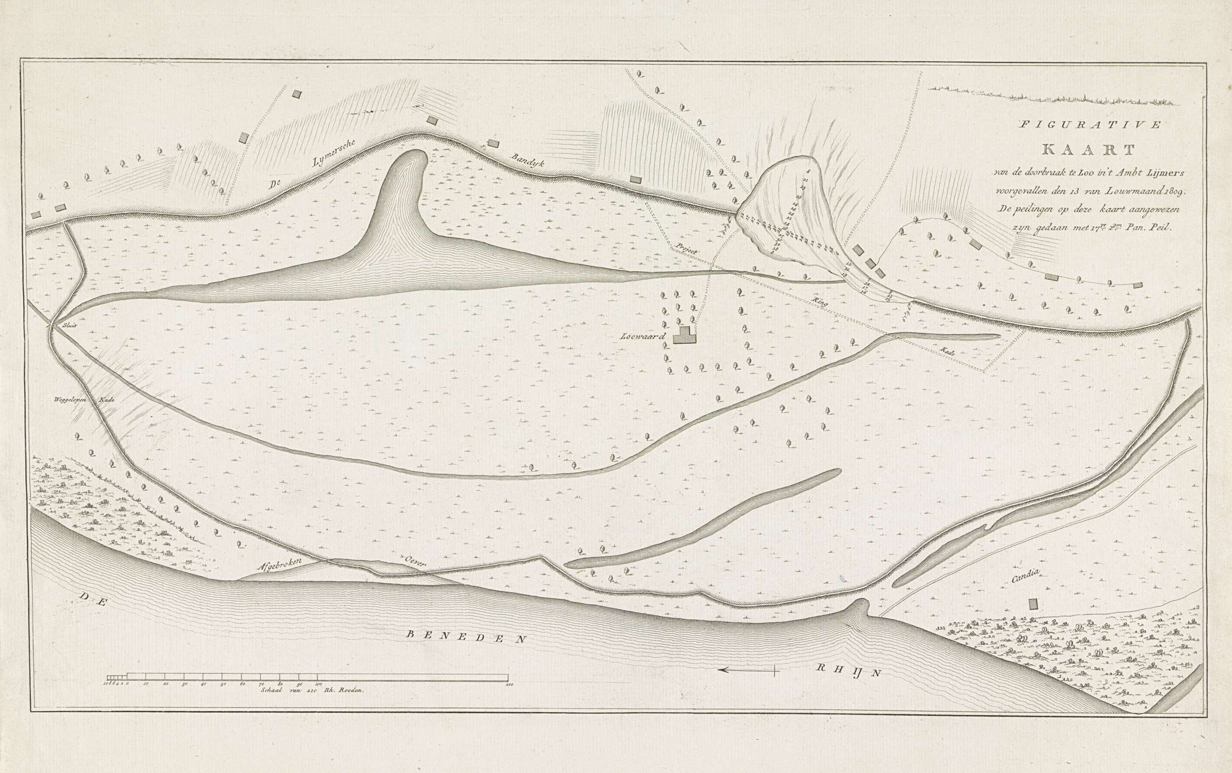 Kaart van dijkdoorbraak te Loo, 1809