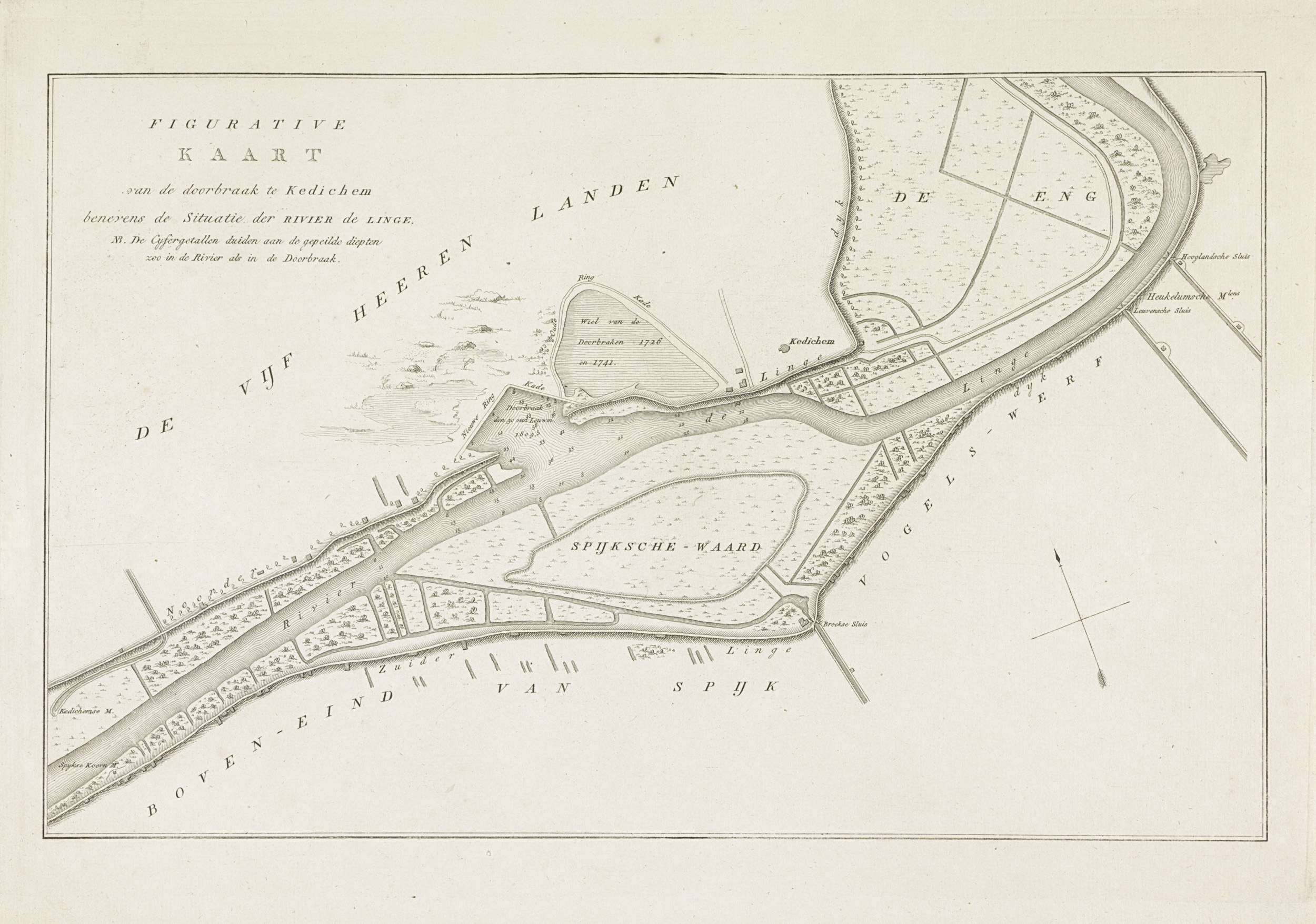 Kaart van dijkdoorbraak te Kedichem, 1809