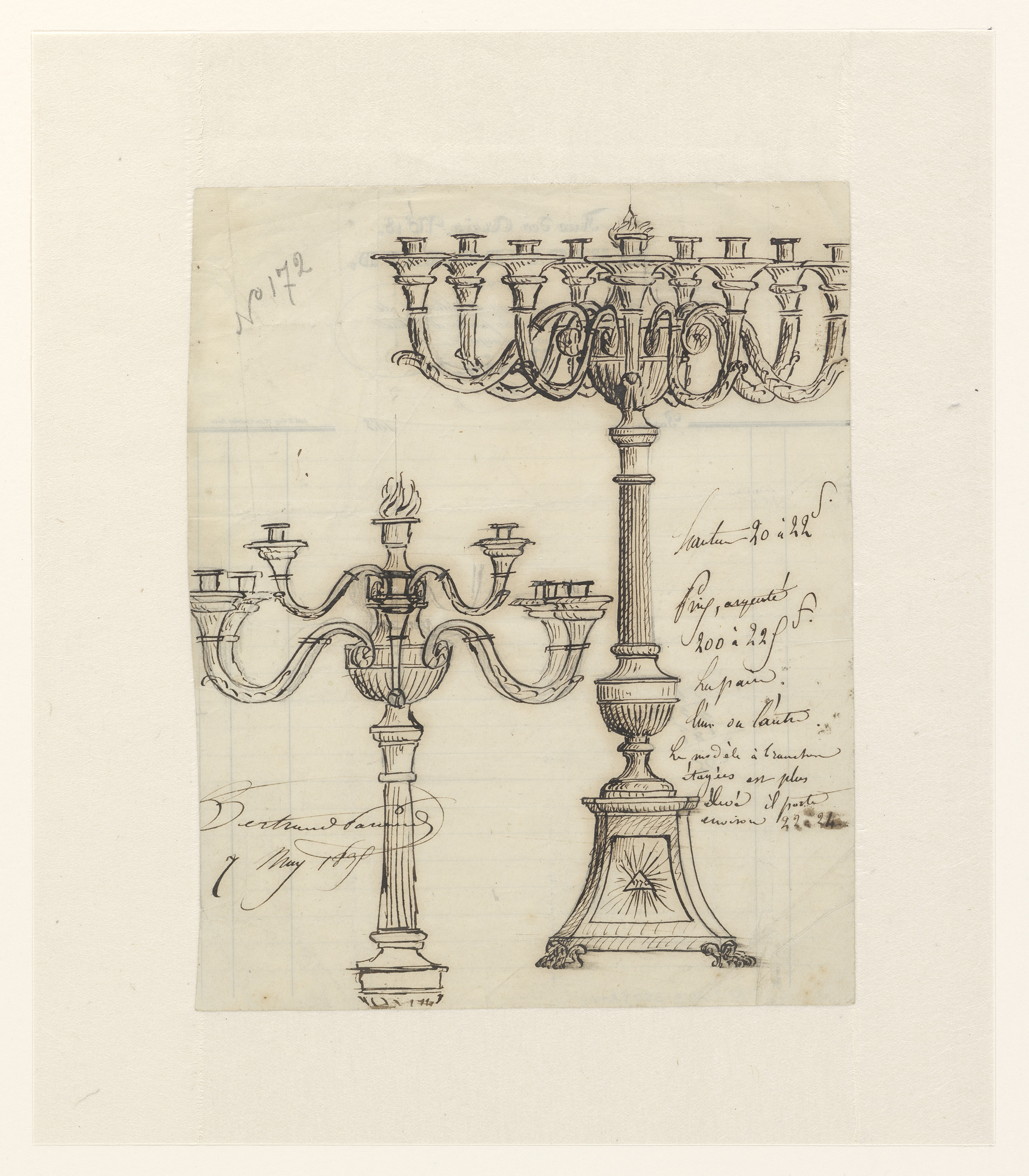 Ontwerp voor een doopvont, met een bovenaanzicht en ...