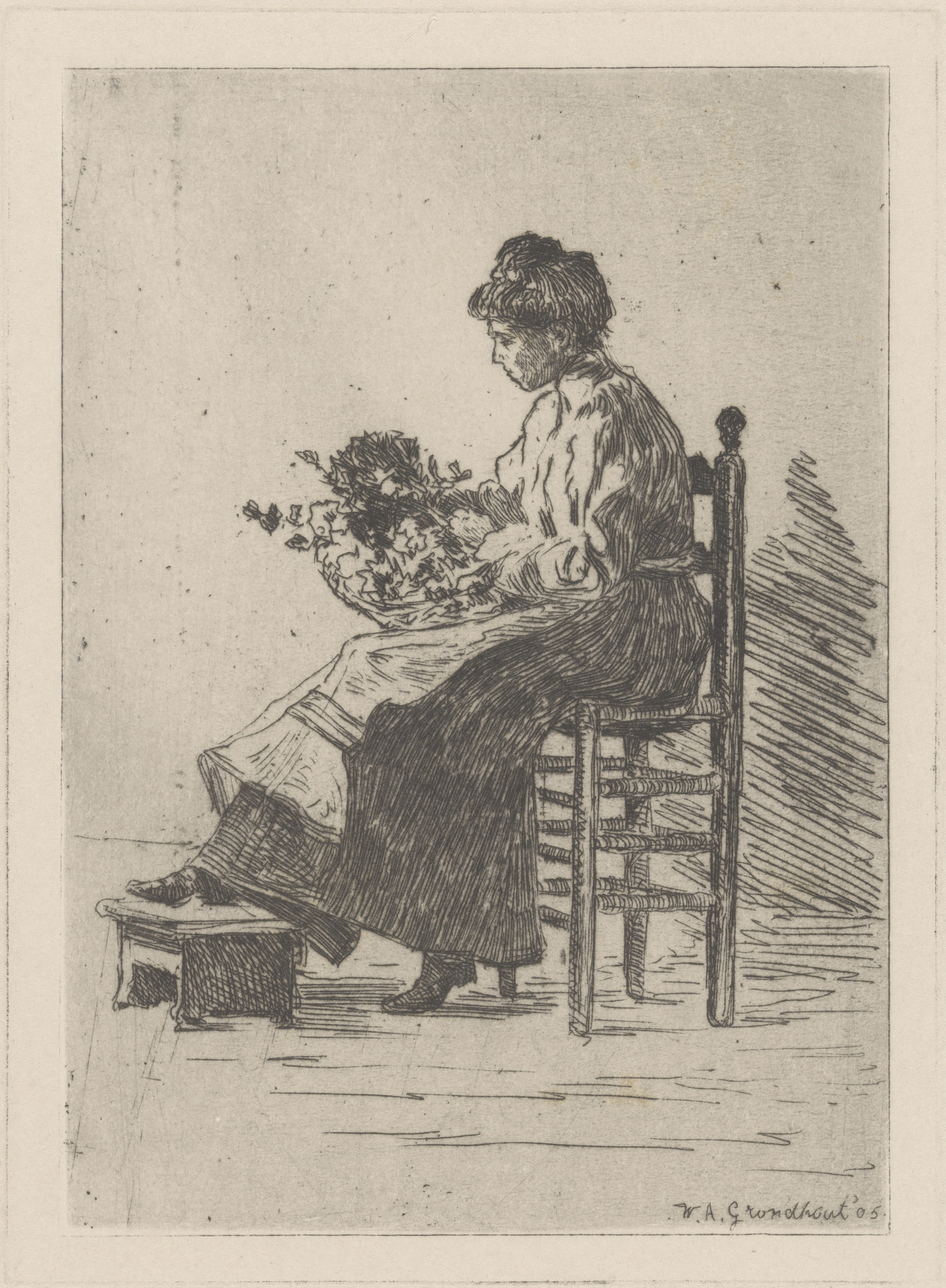 Vrouw met bloemen op haar schoot