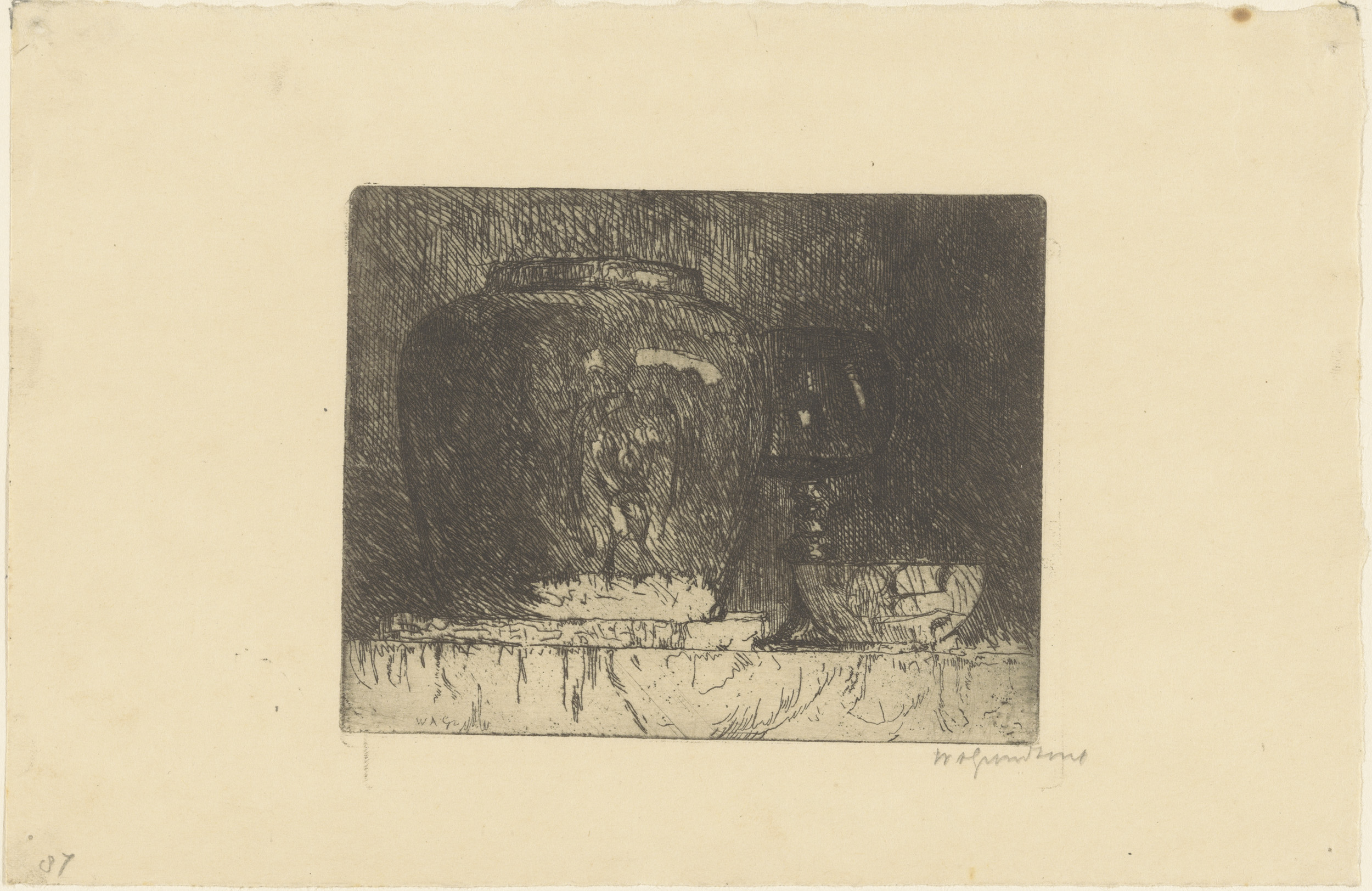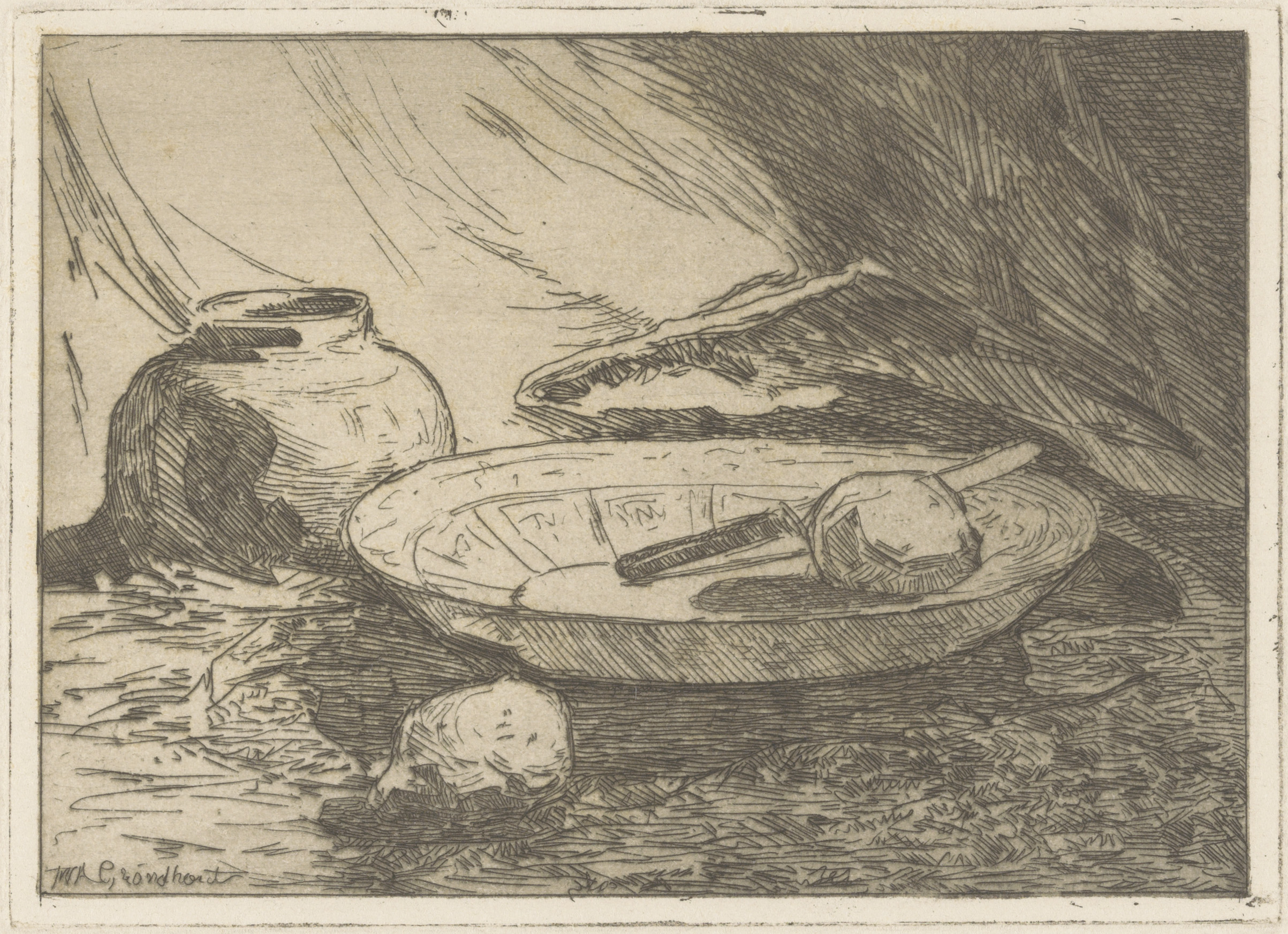 Stilleven met pot en schaal