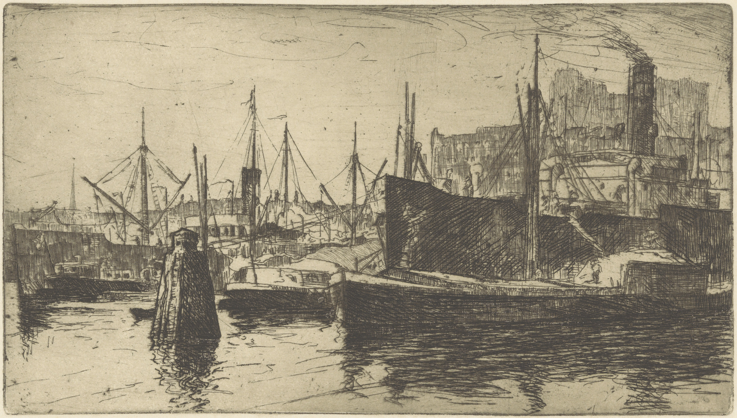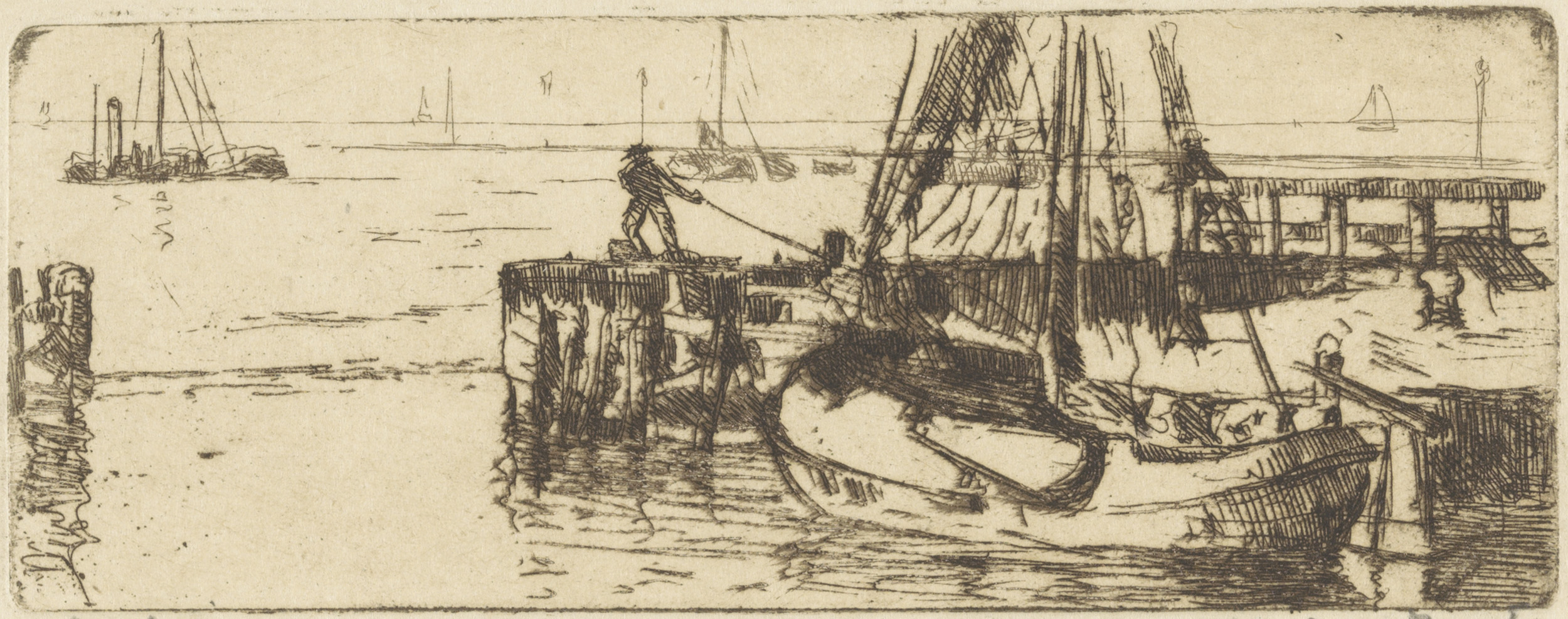 Afgemeerde zeilschepen bij een kade