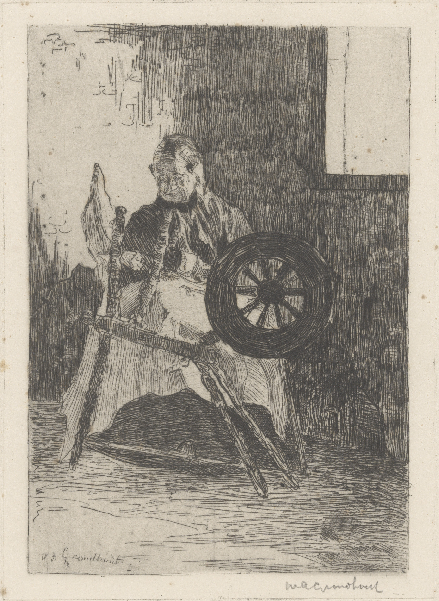 Vrouw achter een spinnewiel