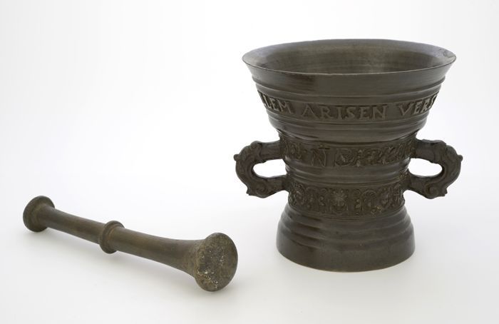 Bronzen vijzel met "WILLEM ARISEN VERSTEGH ANNA IANS...